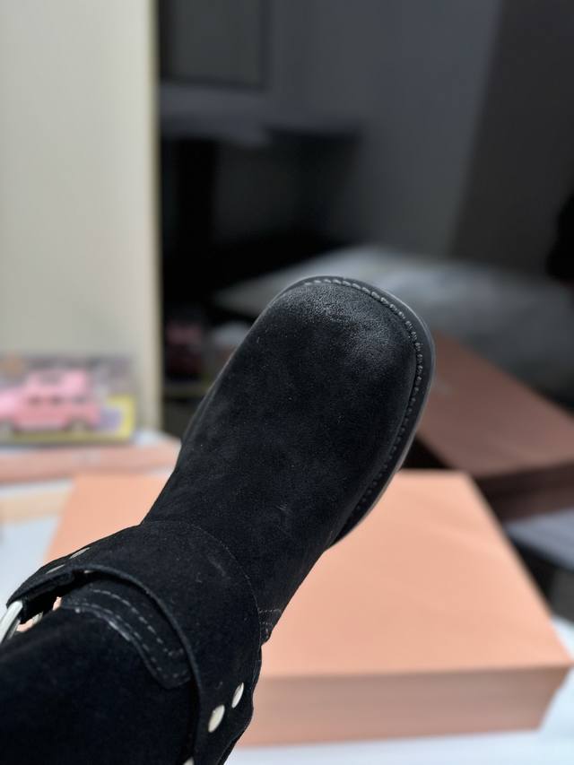 出厂价Pp: 扣长靴 Miu Miu 走秀款 马丁骑士靴 秋冬最美战靴鞋头大大翘翘是精髓。 妥妥断货节奏每一双都是独一无二不对寸的拉丝做旧复古效果 ,酷飒酷飒的延续了爆款风格Miu 24秋冬秀款短靴长靴经典机车靴造型帅气摩登鞋面植糅小牛皮质感超好 面料:进口擦色牛皮 高丝光牛反绒 内里:牛皮 大底:橡胶材质 码数:35-39 40.41定做码数 包装:全套原版包装