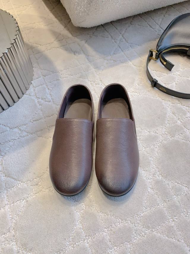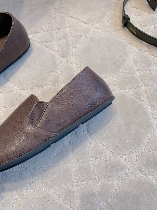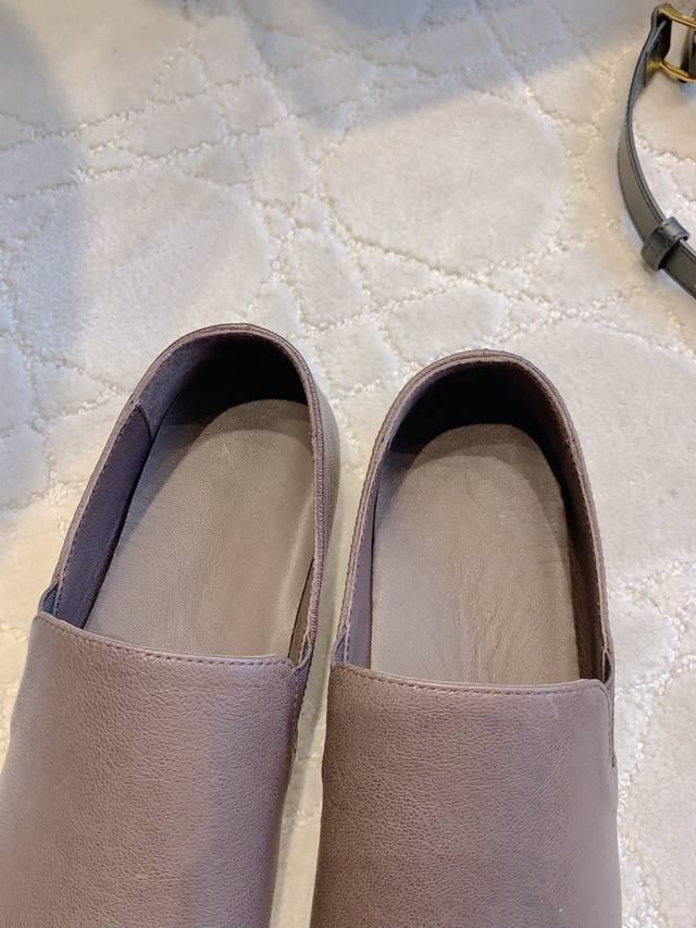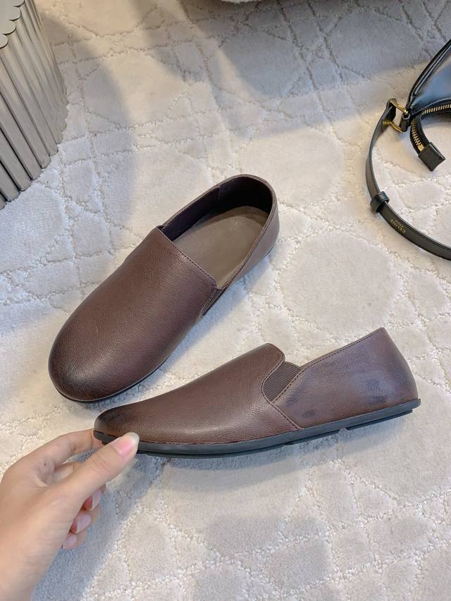 出厂价pp 无标款 DDD 莞产高货!The Ro*白标!最新极简风 进口牛皮植鞣一脚蹬乐福鞋 复古作旧擦色工艺老钱风! DDD 这是一个用最好的材质来制作极简风的品牌,非常用心的工艺收获了一大波粉丝,轻盈自在不厚重,柔软舒适! DDD 经典通勤的乐福鞋~看似简约工艺确一点也不简单,鞋面选用进口牛皮植鞣 鞋型饱满立体,不多不少刚刚好,整双鞋子天然生成的纹理自然而又立体,圆润宽松,关键很轻,上脚是享受,搭配任何衣服都好看! DDD 原板楦型让整双鞋视觉效果拉满,植鞣皮材质 质感色泽 比通货对比,光泽度皮质颗