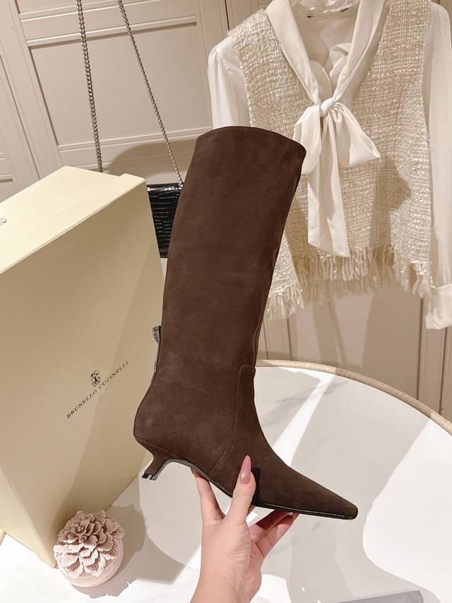出厂价Pp: 独家款式! 市场唯一对版 最高品质 独家开模款Brunellocucinelli 长靴的经典灵感定义了这款新的现代优雅风格。珍贵的进口小牛京皮上展现着别致的斑驳,原版注塑真皮大底!让您在舒适中彰显时尚性格。给您带来更好的舒适度,又是款穿上就不愿脱下的一款经典鞋款,原版一比一复刻。尖头矮跟5Cm 码数35-42 40 41 42订做不退换