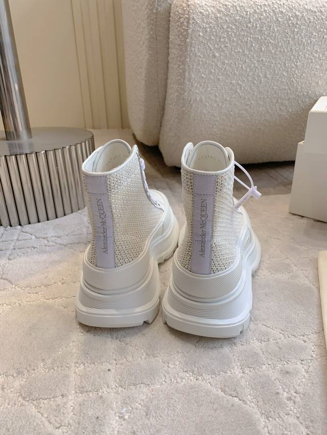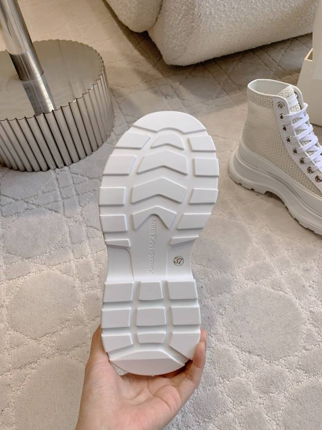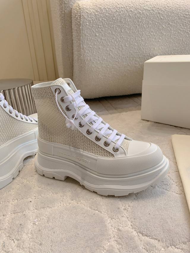 出厂价pp 顶级版本 Alexander Mcquee*新款编织系列高帮厚底鞋 情侣款顶级品质! 鞋面原版编织面料拼接牛皮 内里垫脚顶级混种羊皮 原版开模大底