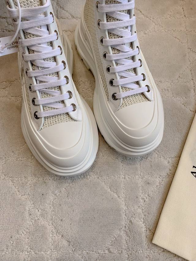 / 出厂价pp 顶级版本 Alexander Mcquee*新款编织系列高帮厚底鞋 情侣款顶级品质! 鞋面原版编织面料拼接牛皮 内里垫脚顶级混种羊皮 原版开模大底