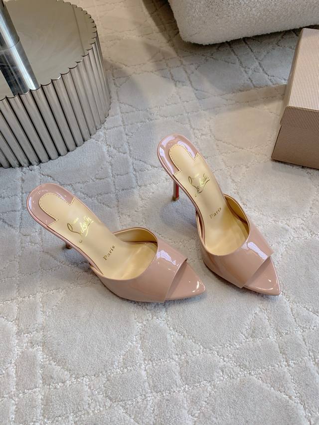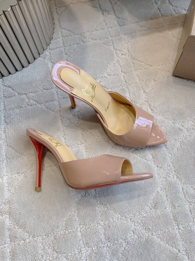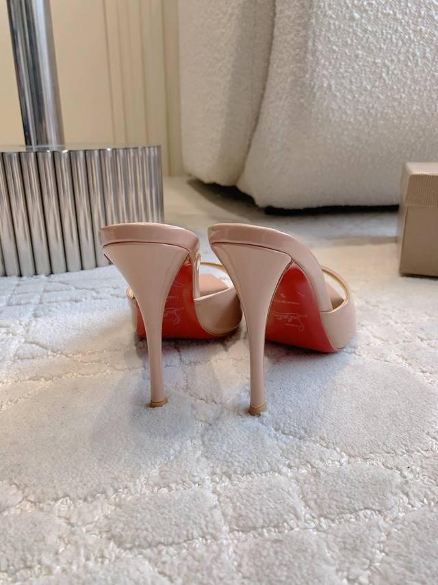 Christian Loubouti* 新款鱼嘴高跟拖鞋 流畅的曲线勾勒曼妙风情 尽显性感风姿 万年经典款