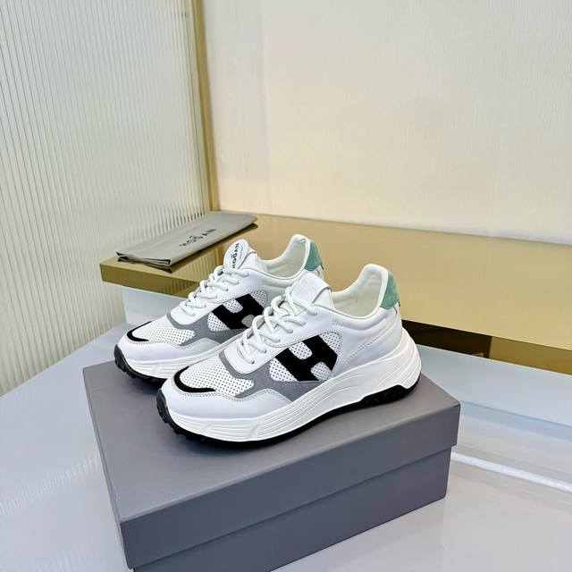 出厂价pp: Hogan霍根运动休闲情侣鞋,绒面小牛皮拼接设计,侧面Logo撞色,鞋舌有商标压印,穿孔精细对称,线条完美流畅,细带拼接运动鞋,经典永不过时,是情