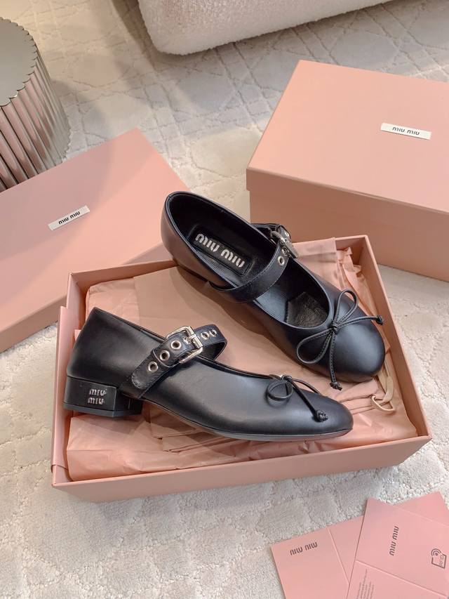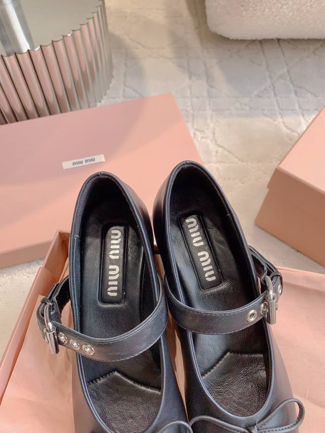 / 出厂价pp Miu新款蝴蝶结玛丽珍单鞋 复古又时髦的单品 非常修饰脚型 舒适百搭款 鞋面小牛皮 内里垫脚羊皮 意大利真皮大底 尺码35-39 40 41定做