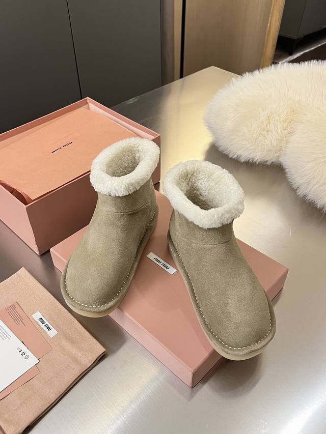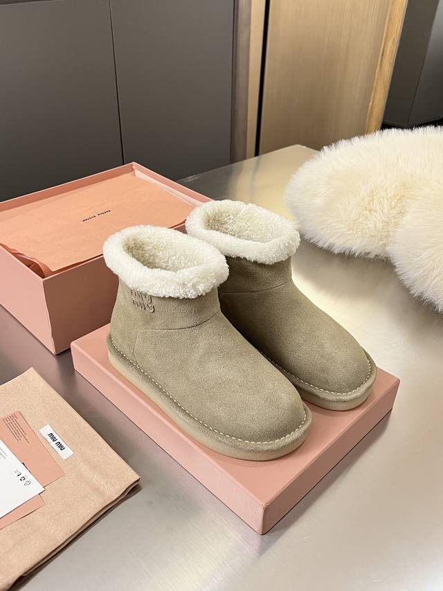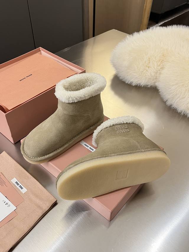出厂价Pp: Miumiu.秋冬走秀新款纯羊毛雪地靴 原版1:1包边工艺高配版 冬日甜酷少女的温暖选择雪地靴甜酷新高度,从造型到细节,把少女感与保暖性拿捏刚好,