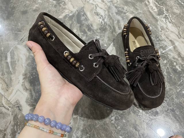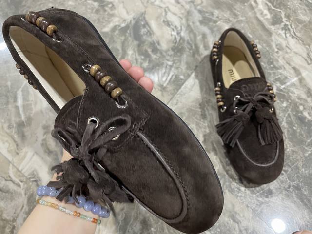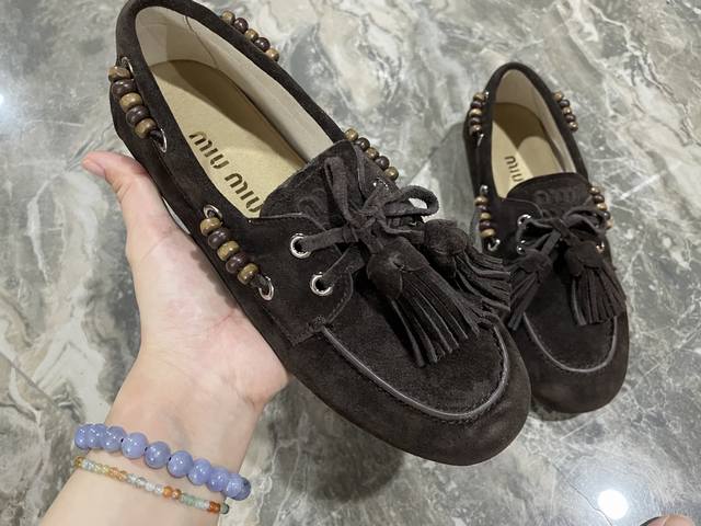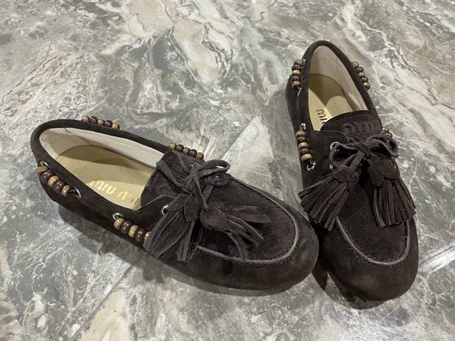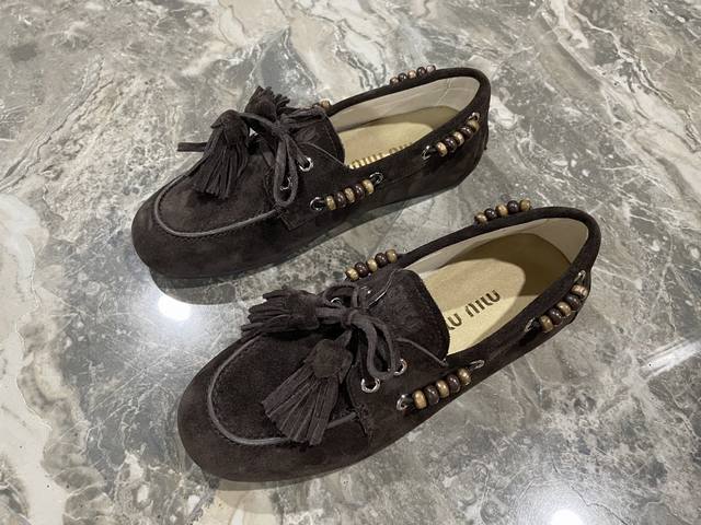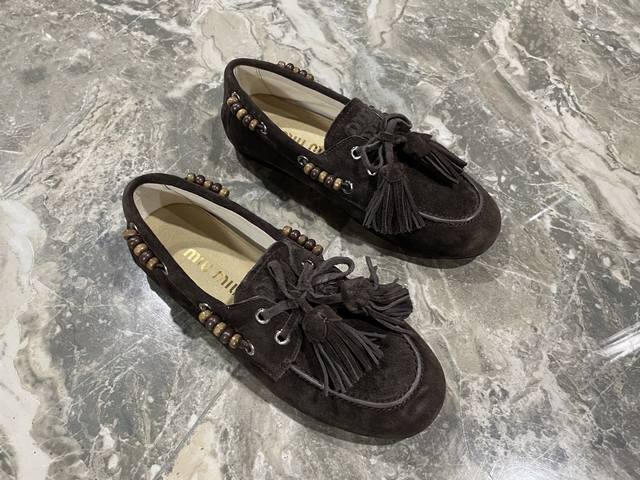 出厂价Ppp 高版本 Miu Miu 缪缪 25Ss 早秋新款英伦风系带乐福鞋 Miumiu秀场适当“邋遢”擦色工艺独一无二的工艺来自Miu Miu系列的细节特写 新季的潮流要素一 适当 “邋遢”,就是随性而为的时髦态度 与皮革的印记,夸张地表达时光的流逝,传递曾经使用 与此刻挚爱的概念,多元对撞,传达现代风格~ 怎么穿都好看今夏时髦精最爱 看起来不怎么舒服 上脚超级舒服 面料:原版皮+面料 内里:原版皮 大底:原版鞋底 Size:#35-40 40订做不退换
