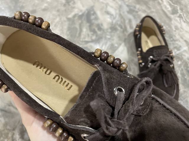 出厂价Ppp 高版本 Miu Miu 缪缪 25Ss 早秋新款英伦风系带乐福鞋 Miumiu秀场适当“邋遢”擦色工艺独一无二的工艺来自Miu Miu系列的细节特