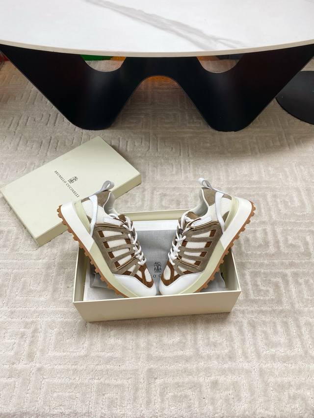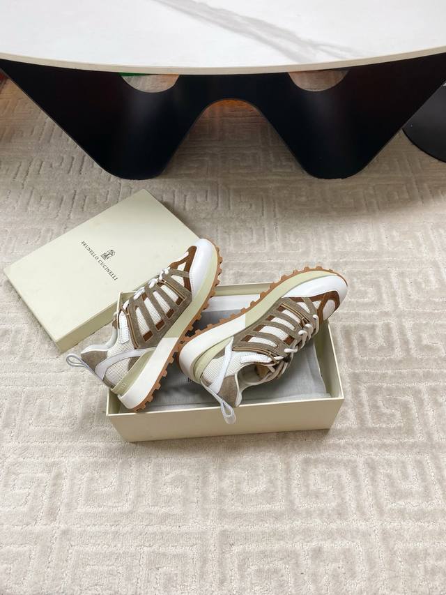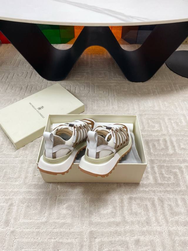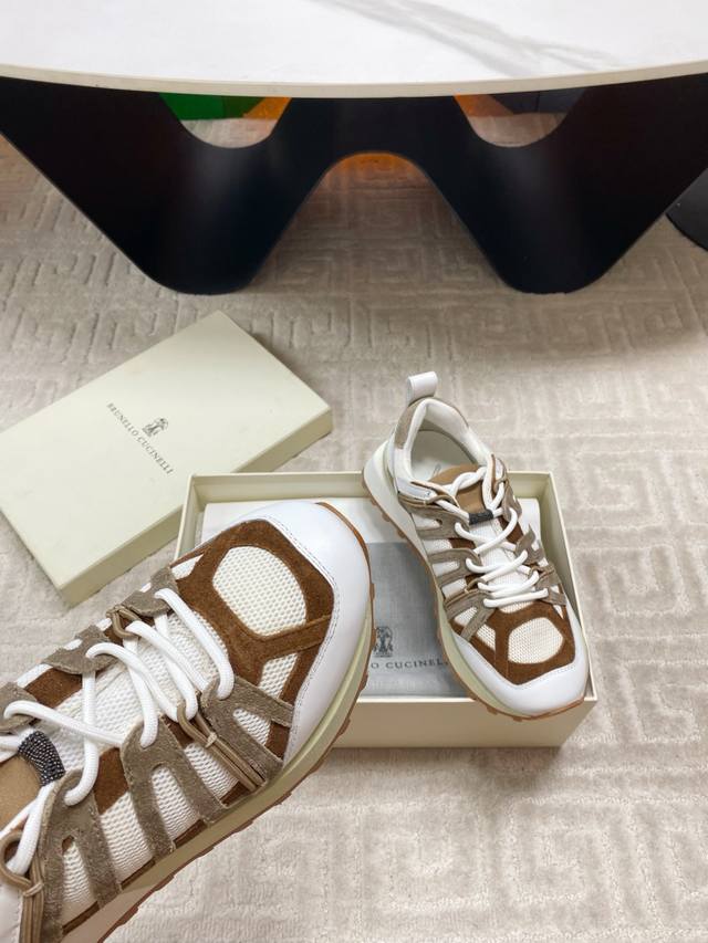 / 出厂女 !男 !小众潮牌情侣款! Brunellocucinelli Bc25秋冬新款新品厚底阿甘休闲运动鞋 装饰镶珠运动鞋 原版一比一复刻高丝光牛反绒、羊皮拼