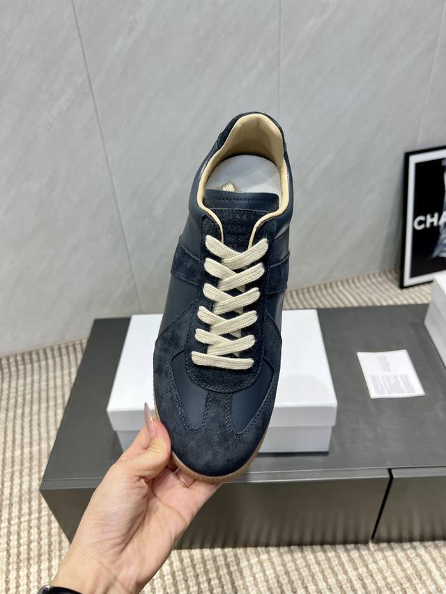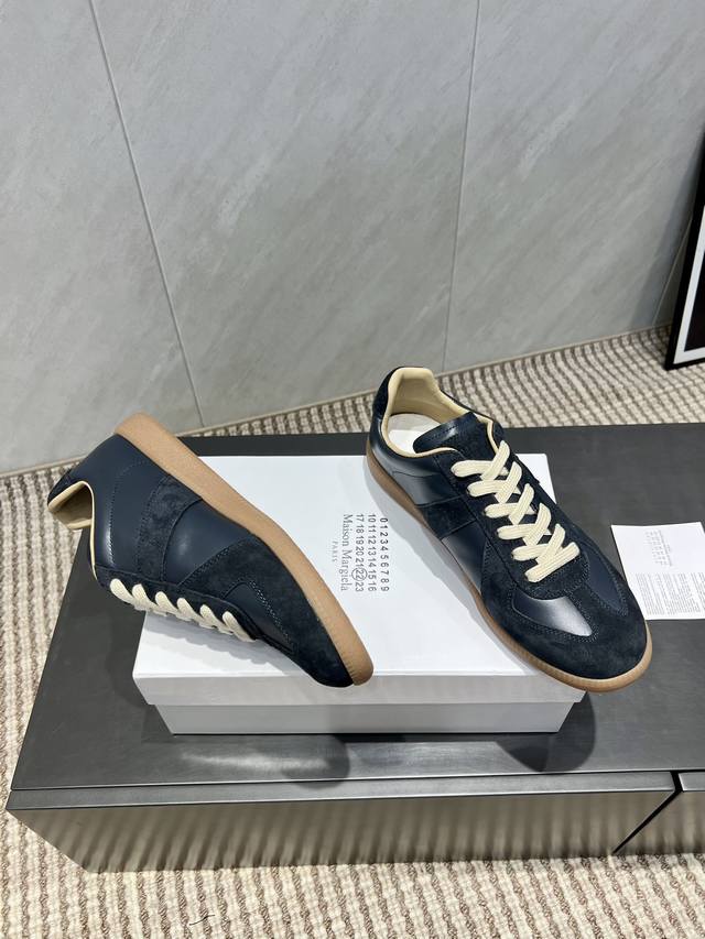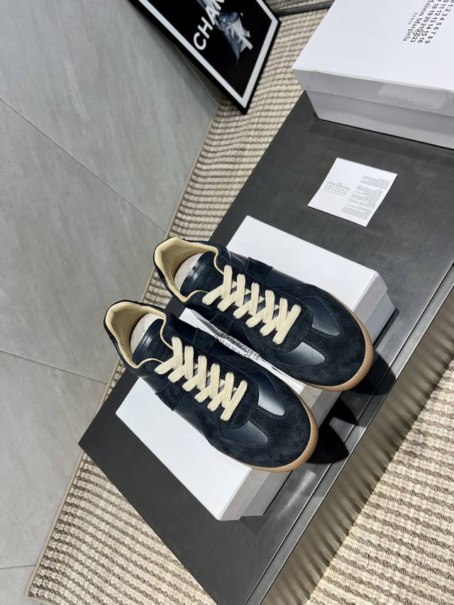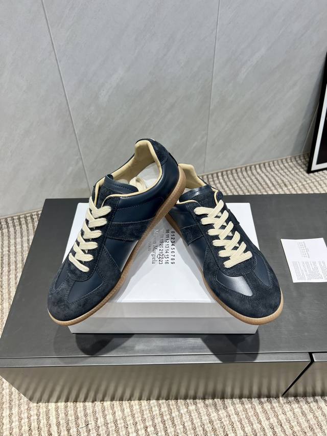出厂:女 男 独家顶级版本 M*M6M*Aison M*Argiela~25Vs秋季经典复古休闲系列 复古圆头休闲鞋 光听到复古风就能立刻想到经典M*Arginal,复古时髦,春夏秋冬配色干净清爽集合,舒适,酷飒,休闲于一体的风格设计,很马吉拉风格,上脚无压力十足先锋元素,原版包装 一个轻奢潮款多元素结合玛吉拉设计师设计这一款德国训练鞋延续了经典的T形真皮拼接,经过设计团队多次的精心改良,只为让您体验最原始的军旅味道~设计师设计工艺:结合运动休闲拉邦套楦顶级工艺,不脱底,不臭胶水,采用拉邦套楦工艺 面料: