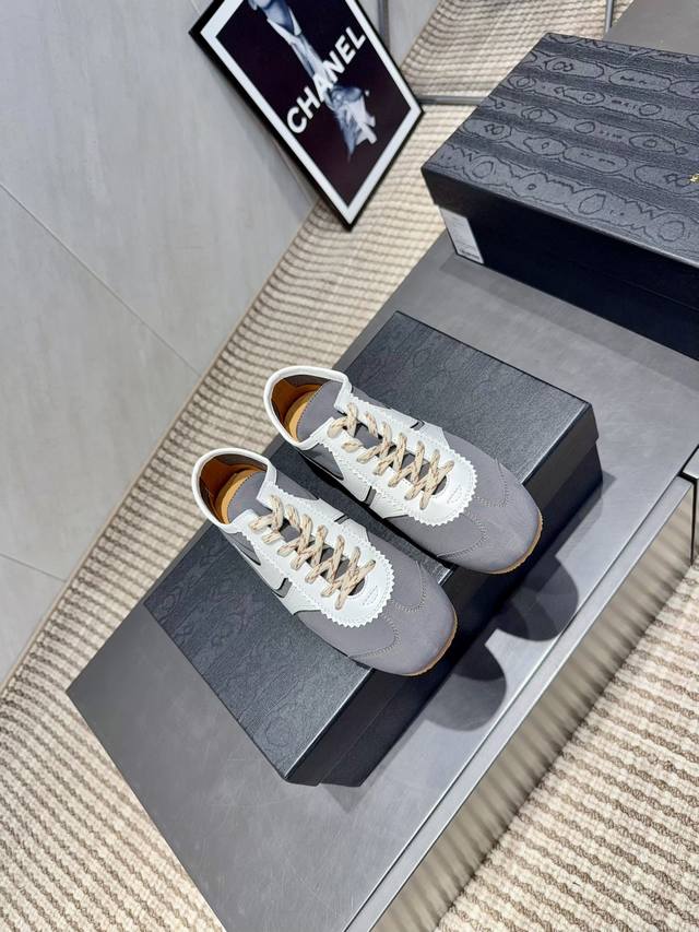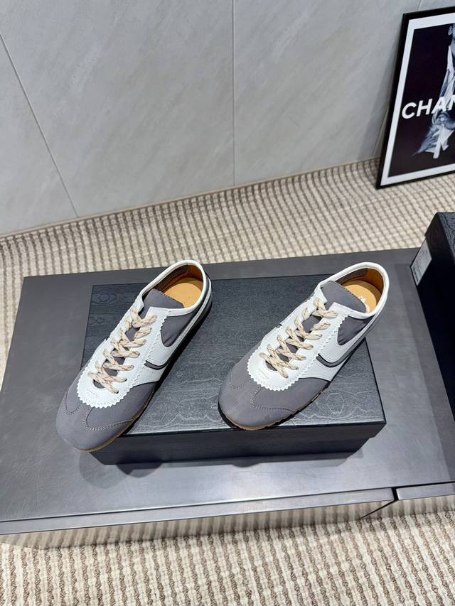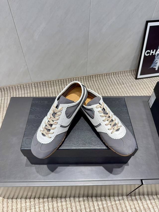 出厂:情侣 独家顶级版本 DDD Dries Van Noten小众2025Vs秋季最新休闲系列 DDD 情侣拼色休闲鞋 DDD Dvn运动鞋 设计师通过改造、扭曲和颠覆经典元素,打造出实用而富有设计感实穿的运动鞋履。新一季的麂皮运动鞋,灵感来源于70年代的马拉松竞技运动。鞋型以马拉松运动鞋为设计原型,搭配极具生命力色彩的绿色、红色、橙色等 Dvn代表性的色彩,实用性与时尚性得到完美的平衡 DDD 配送专柜精美包装 DDD 面料:定制原版牛皮雨伞布拼色 DDD 内里:定制原版高密度透气布料 DDD 垫脚: