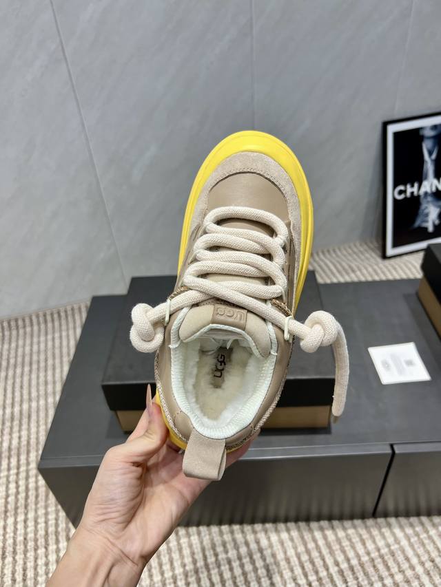 出厂:情侣 独家顶级版本 Ugg~25Vs爆款松糕厚底休闲鞋系列 情侣厚底毛里休闲鞋 一款不会撞衫的鞋子、简约的隔板设计上斑点的大底、鞋面真丝卷毛、秋冬季必备款、无论什么裤子裙子都能驾驭、上脚非常舒适好看 面料:原版定制牛猄羊皮 内里:原版定制羊毛 垫脚:原版定制羊皮 大底:原版开模发泡大底 码数:35-44 女41.男45.定制不退换 包装:原版全套包装 颜色:官网同步更新