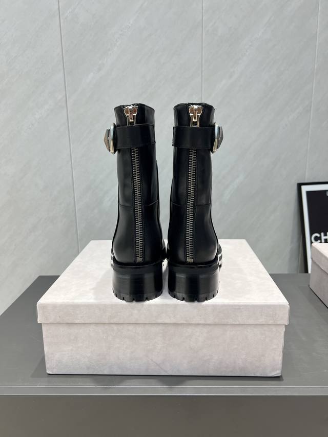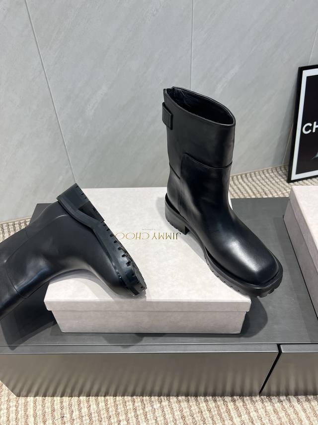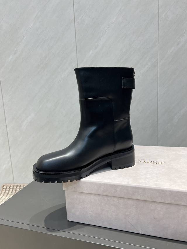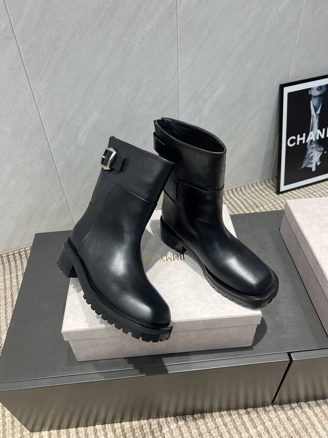 出厂:短靴 独家顶级版本 Jimmychoo吉米周2025Vs秋季最新爆款靴子系列 方头厚底拉链短靴 新款上架这款平底在欧美街拍中出境率超高,Ins也是火了一把