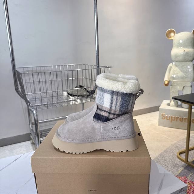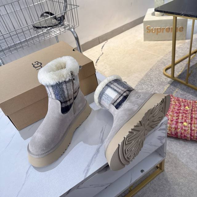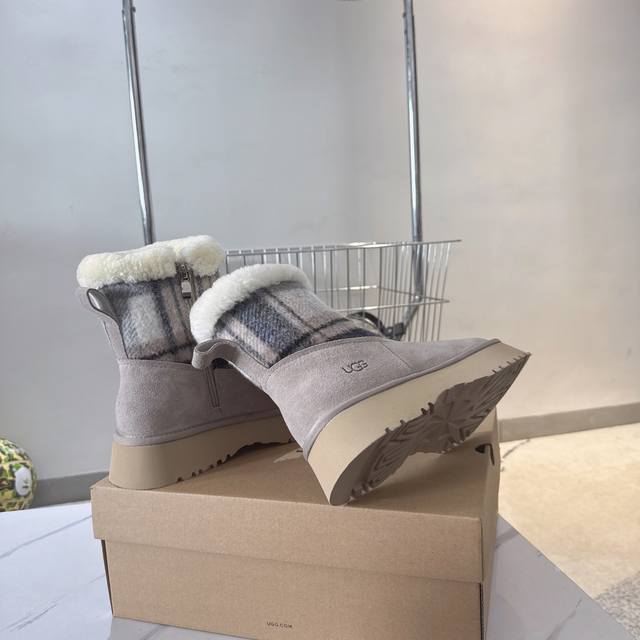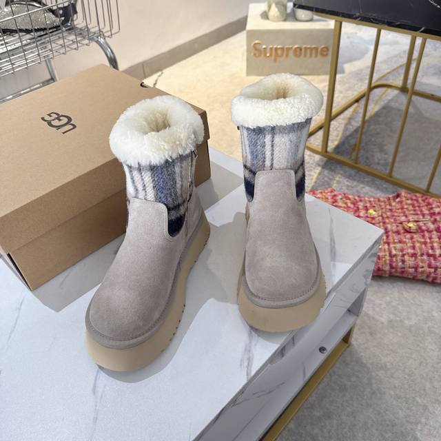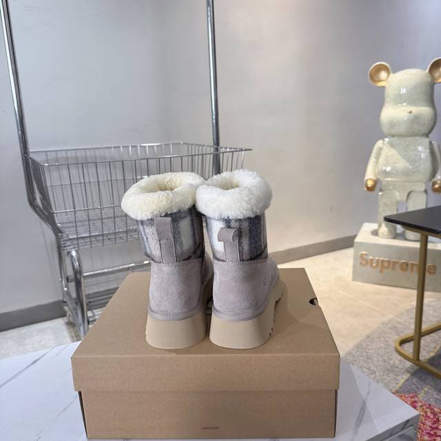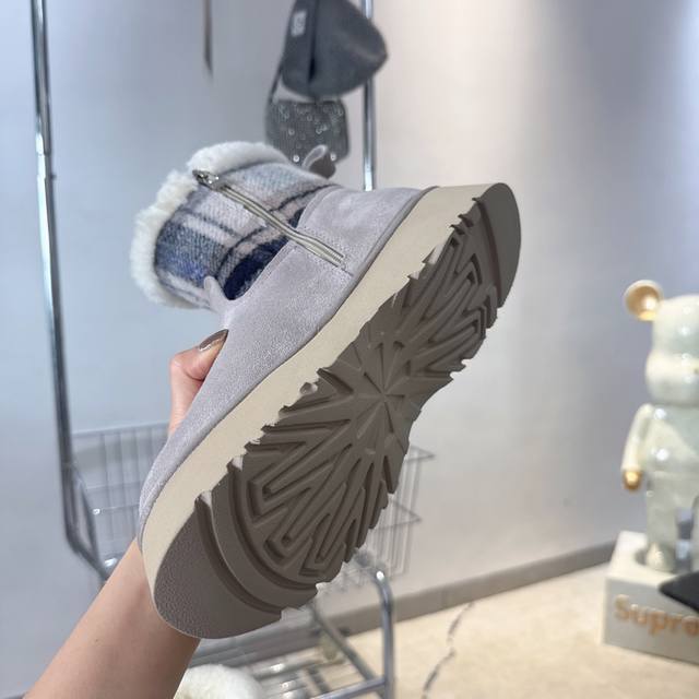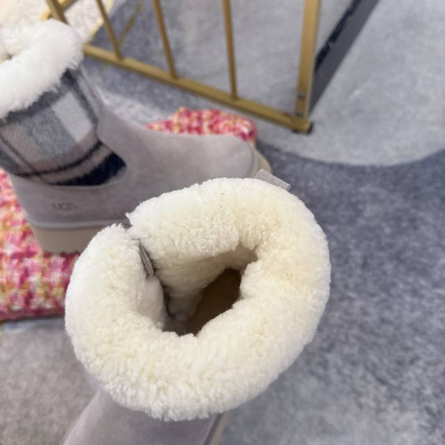 / 出厂高邦 Ul最新款秋冬雪地靴上新啦! Ugg阿尔派系列毛毛鞋 短靴 舒适轻便 翻毛搭配装饰缝线 独特的配色格子 即经典又时尚 让你在人群中轻松脱颖而出 码数3