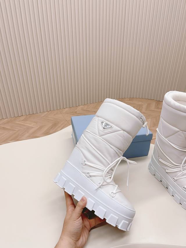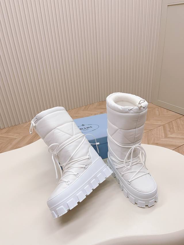 出厂:高靴 独家顶级版本 长期做货 prad*A2025Vs秋冬经典爆款雪地靴系列 厚底雪地靴高靴 新款上架这款厚底在欧美街拍中出境率超高,Ins也是火了一把,