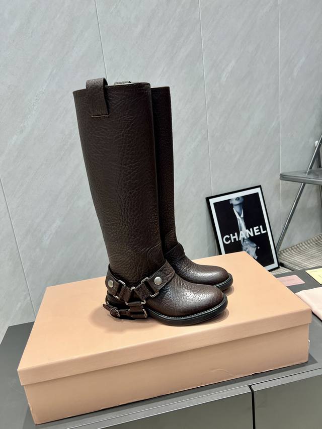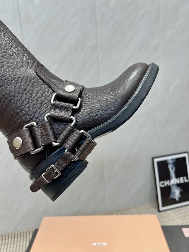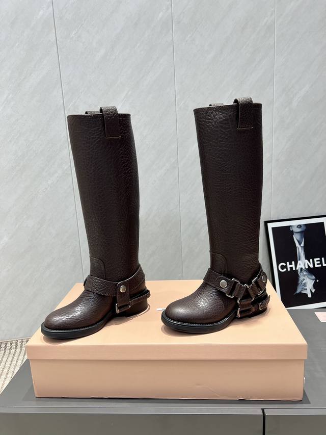出厂:高靴 独家顶级版本 DDD Miumiu缪缪2025Vs秋冬最新走秀爆款靴子系列 DDD 复古圆头一脚蹬高靴 DDD 顶级版本Miumi秋冬限量走秀款长筒靴! DDD 今年最值得入手的靴子 没有之一!易梦玲同款超多网红明星上脚 Miumi今年秋冬确实泰酷辣 秋冬限定款 专柜非常难买 看着很硬的样子 其实非常软巨好穿!脚感超赞! 靴筒宽大 不管腿粗腿细 都能穿出宽松感而且非常显腿直!!朋克风十足! DDD 鞋面:原版定制牛皮 DDD 内里:原版定制牛皮 DDD 垫脚:原版定制牛皮 DDD 大底:原版开