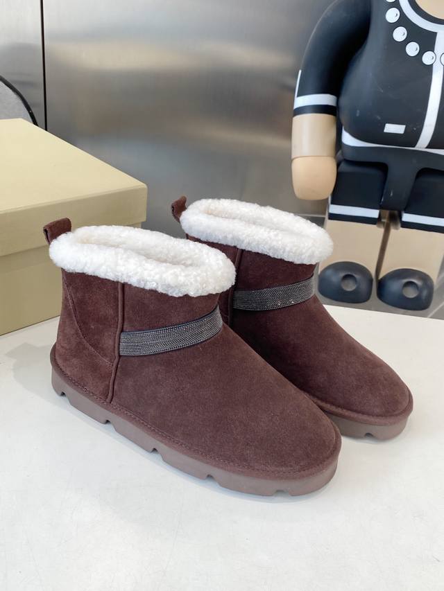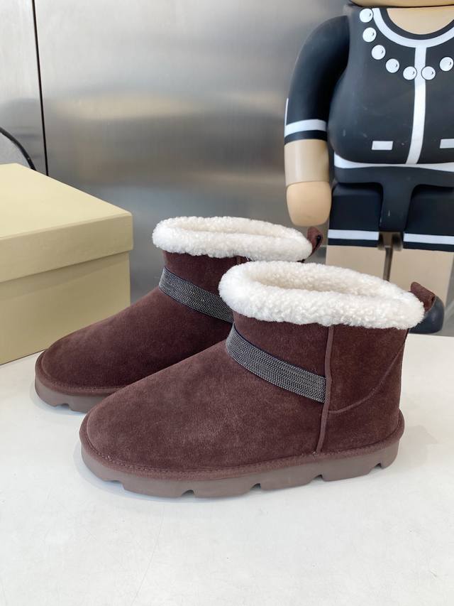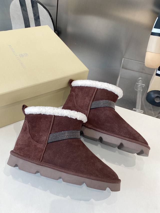 出厂 代购级别Brunello Cucinelli 冬季新款 雪地靴 羊羔毛包子靴 内里;进口澳洲羊羔毛内里 大底:定制意大利高密度原版大底 面料:进口高丝光