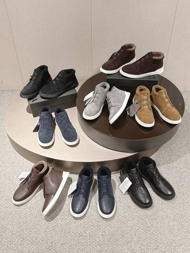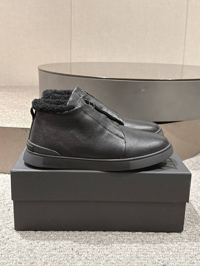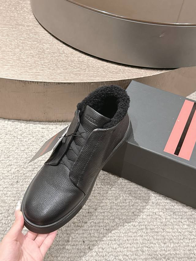 出厂 。吴磊明星同款Zegna杰尼亚25秋冬新款高帮男士真羊毛里休闲鞋毛靴毛鞋棉鞋,皮鞋小白鞋 Triplestit男一脚蹬套穿奢华休闲鞋板鞋小白鞋男鞋皮鞋,原
