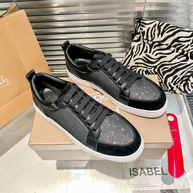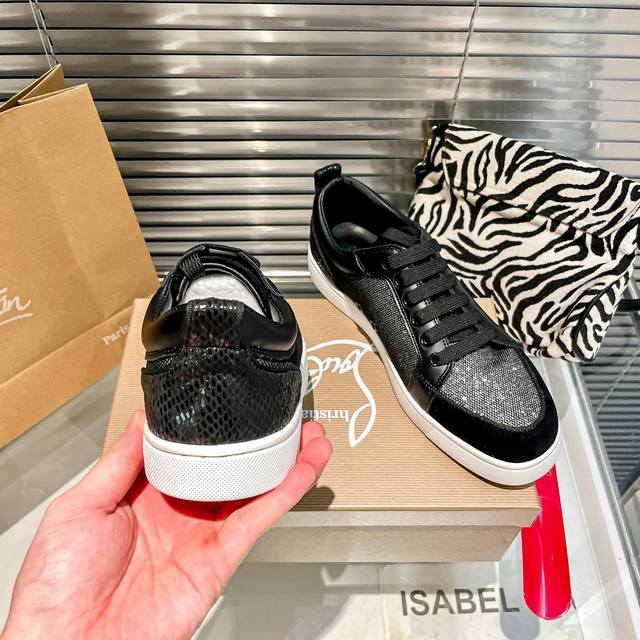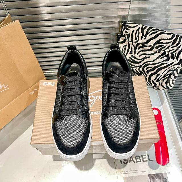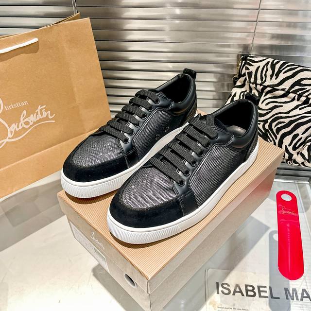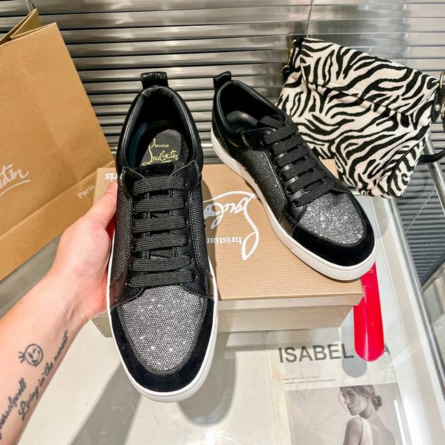 出厂: 定制款 Cl低帮板鞋系列 铆钉 水钻 运动鞋休闲鞋红底鞋 情侣款 码数:女34-40,男40-47