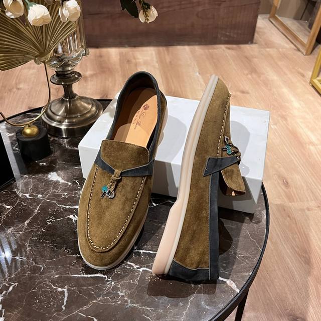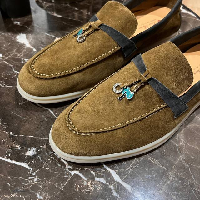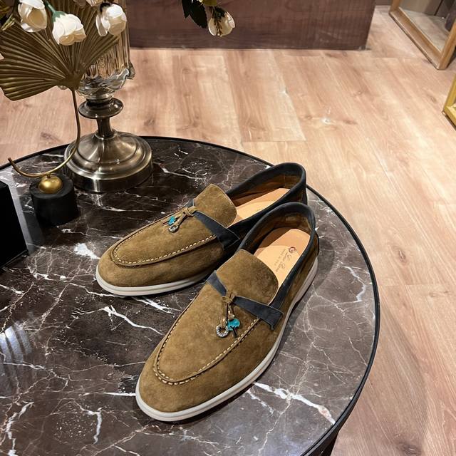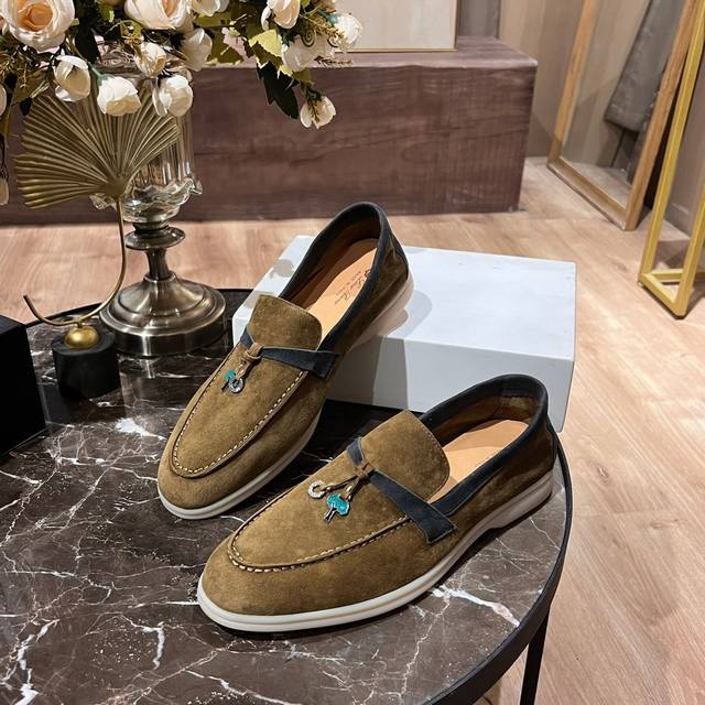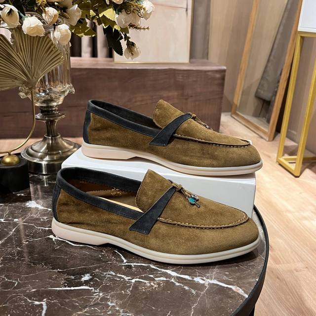 出厂: 情侣款 顶级品质 DDD Loro pian*经典爆款Lp顶级版本 英伦流苏平底毛毛包头乐福鞋 DDD 原来这就是传说走两万步都不会累脚的乐福鞋这双乐福鞋把颜值和脚感都拿捏住了,上脚一走就会被彻底沦陷~极简的设计吸睛耐看,穿搭加分项呀 软乎乎的脚感质感出众,不会磨脚就很Nice搭配软软糯糯的鞋底,日常通行久穿不累哦 谁能拒绝得了一双百搭又好看的乐福鞋呢?简直不要太气质,脚感和质感都拿捏,关键是显腿长不累脚,主打的就是一个刚刚好! DDD 材质:鹿皮 进口大密度羊毛 DDD 内里:水染牛里 DDD