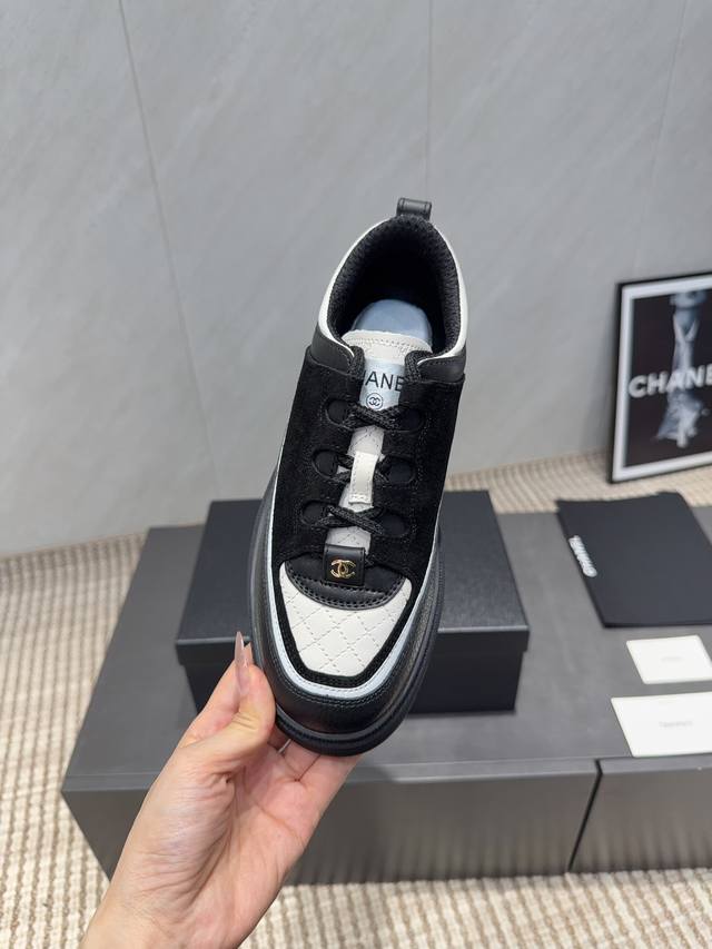 出厂: 独家顶级版本 DDD 小香C家2025Vs早秋火爆休闲系列 DDD 拼色厚底休闲鞋 DDD 仙女款,最新的拼色绝了,无法抗拒,最新饼干鞋目前超级流行的彩色休闲鞋,网红明星小红书狂追热推 发售蠢萌可爱的造型带了点复古味! 造型特殊,很有辨识度, 显瘦显腿长,绝对实力派,穿上也很舒服,高颜值 舒适,增高 一定要推荐给大家,今年系列的主打, 极简的风格 DDD 面料:原版定制牛皮牛猄拼色工艺 DDD 内里:原版定制羊皮 DDD 垫脚:原版定制羊皮 DDD 大底:原版开模双色成型底 DDD 码数:35-3