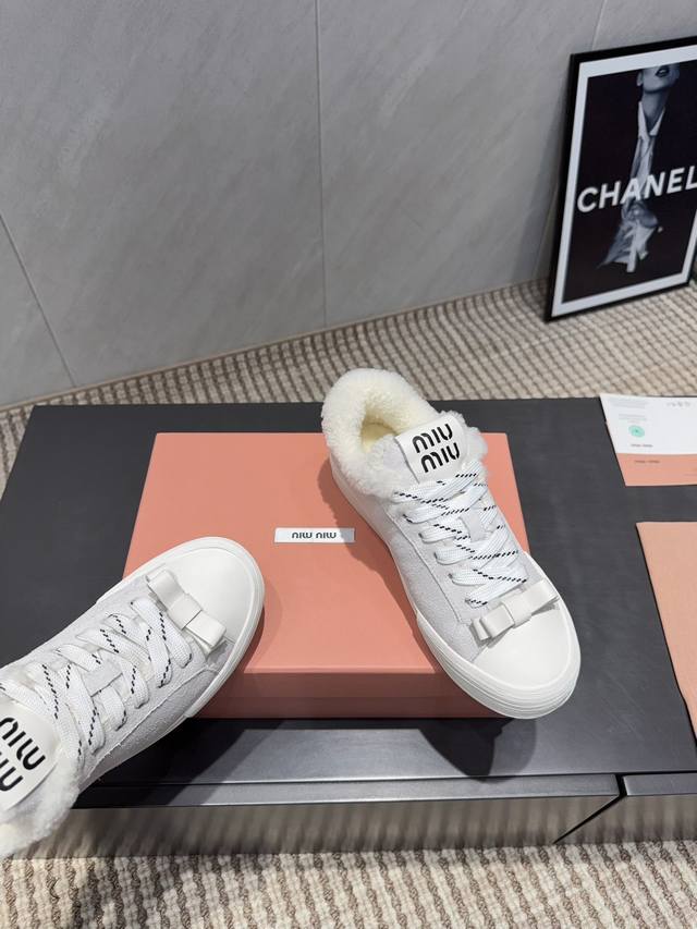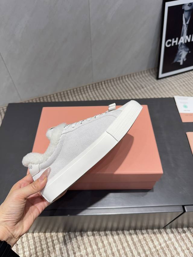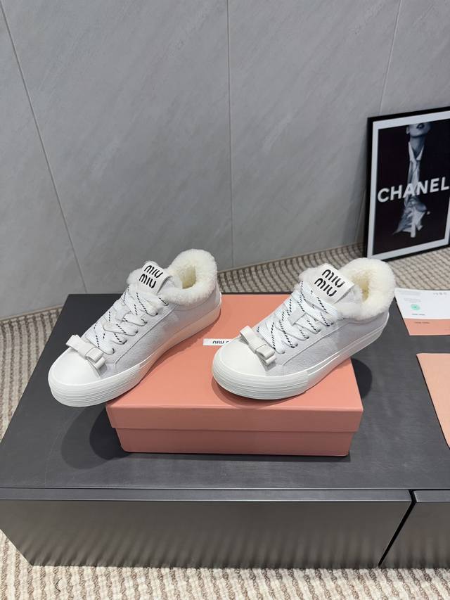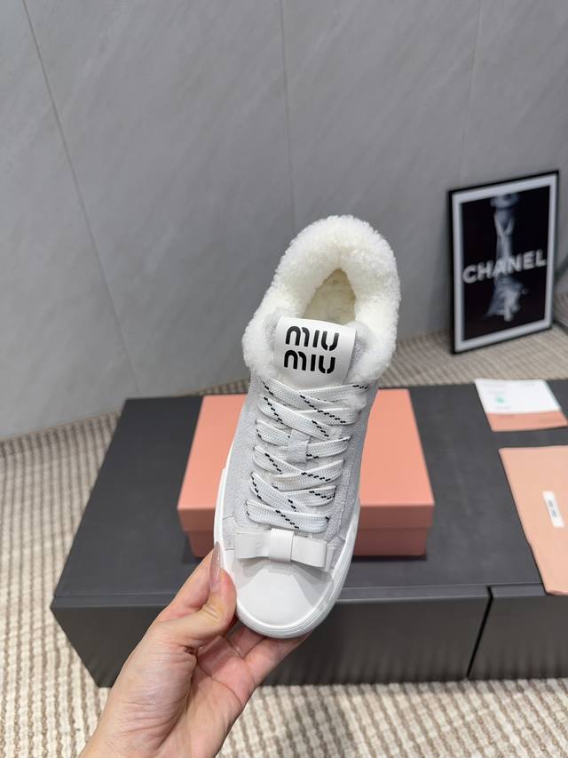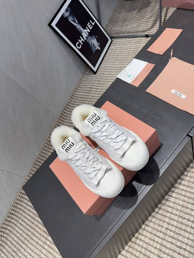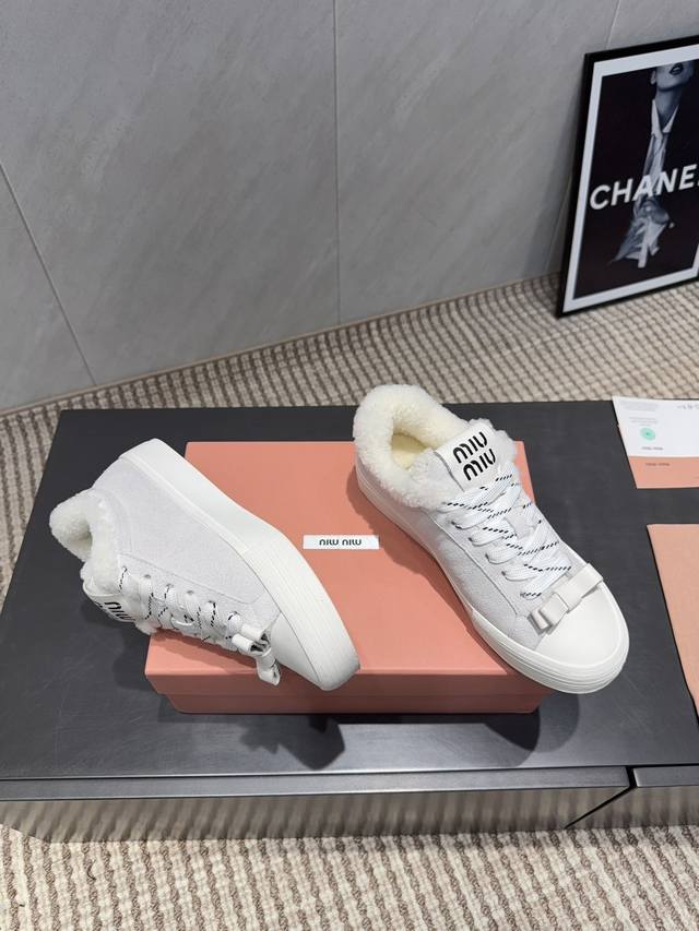 出厂: 独家顶级版本 缪缪Miumiu 2025Vs最新爆款休闲鞋系列 厚底毛里休闲鞋 Miumiu最新爆款 前卫大胆的设计,Miu Miu风格融于此款厚底帆布运动鞋的简约线条, 别致徽标饰于鞋舌与背面,点缀复古设计,平添标志性元素!厚底设计定义前卫的现代风格 面料:原版定制牛皮牛猄拼色工艺 内里:原版定制羊毛 垫脚:原版定制羊毛 大底:原版开模防滑成型底 包装:原版全套包装 码数:35-39 40.41.定制 颜色:官网同步更新