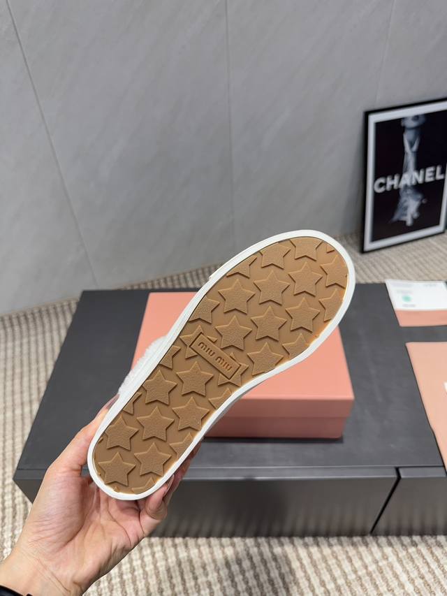出厂: 独家顶级版本 缪缪Miumiu 2025Vs最新爆款休闲鞋系列 厚底毛里休闲鞋 Miumiu最新爆款 前卫大胆的设计,Miu Miu风格融于此款厚底帆布
