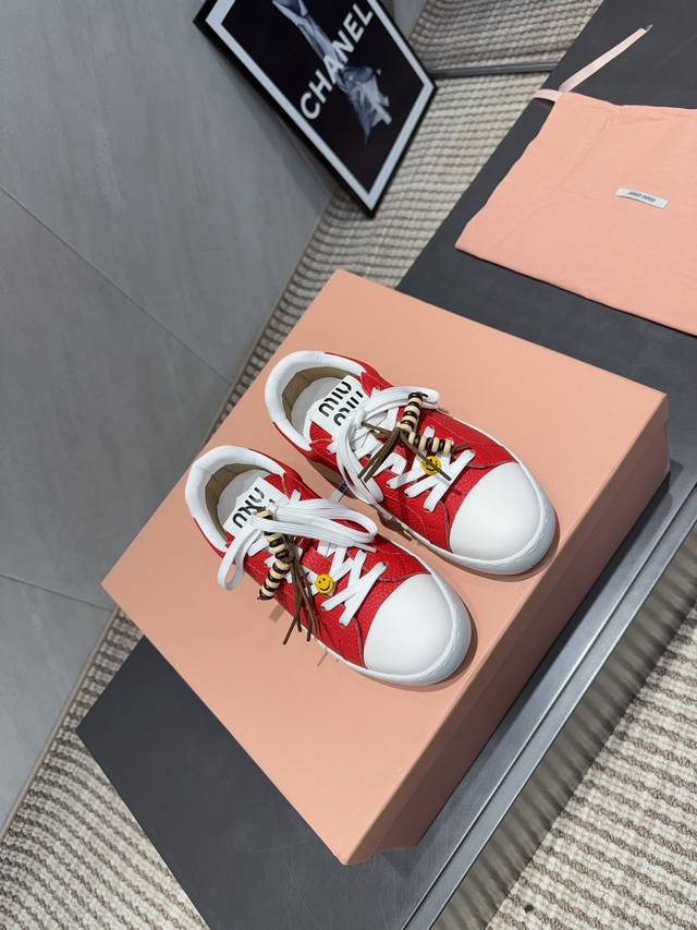 出厂: 独家顶级版本 DDD 缪缪Miumiu 2025Vs最新爆款休闲鞋系列 DDD 拼色厚底休闲鞋 DDD Miumiu最新爆款 前卫大胆的设计,Miu Miu风格融于此款厚底帆布运动鞋的简约线条, DDD 别致徽标饰于鞋舌与背面,点缀复古设计,平添标志性元素!厚底设计定义前卫的现代风格 DDD 面料:原版定制牛皮拼色工艺 DDD 内里:原版定制羊皮 DDD 垫脚:原版定制羊皮 DDD 大底:原版开模防滑成型底 DDD 包装:原版全套包装 DDD 码数:35-39 40.41.定制 DDD 颜色:官网