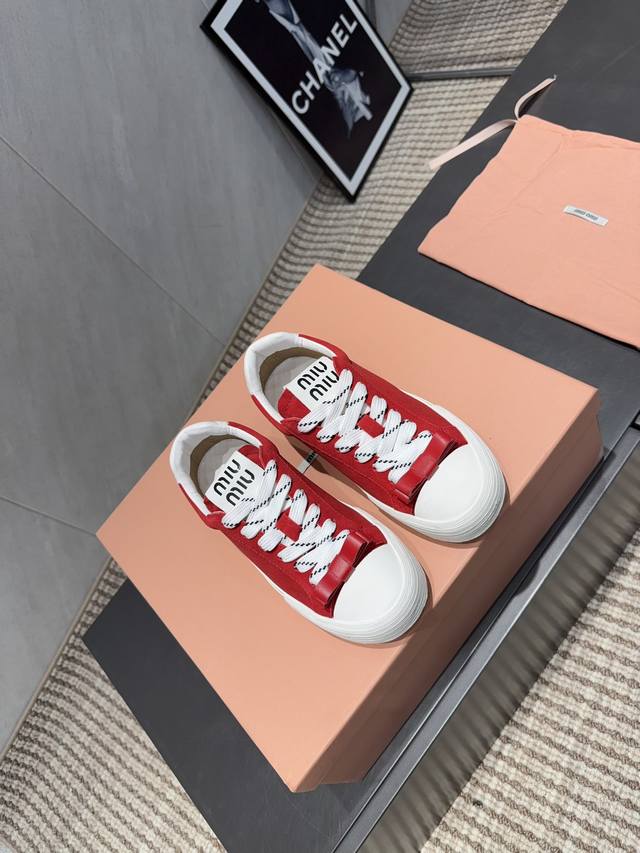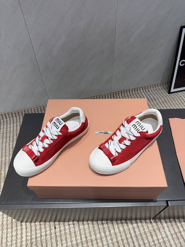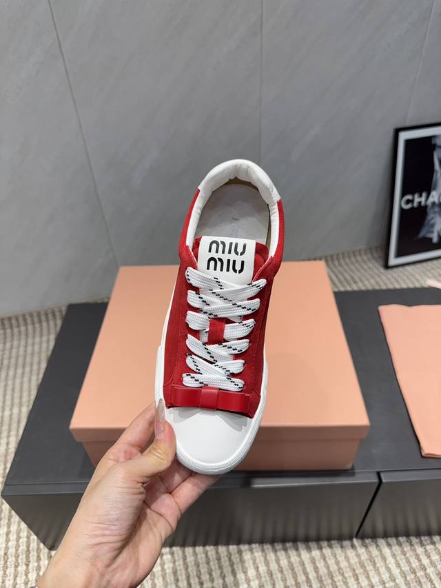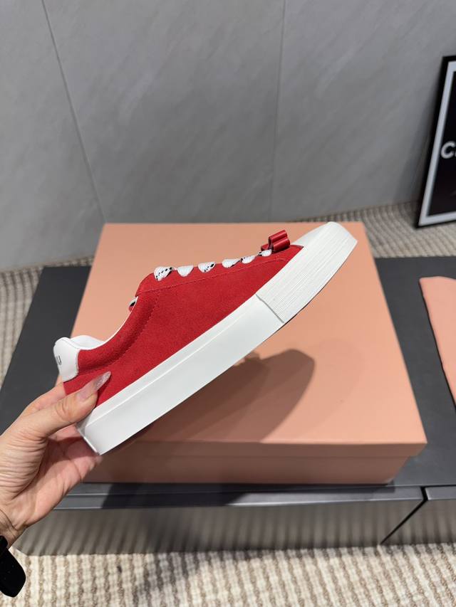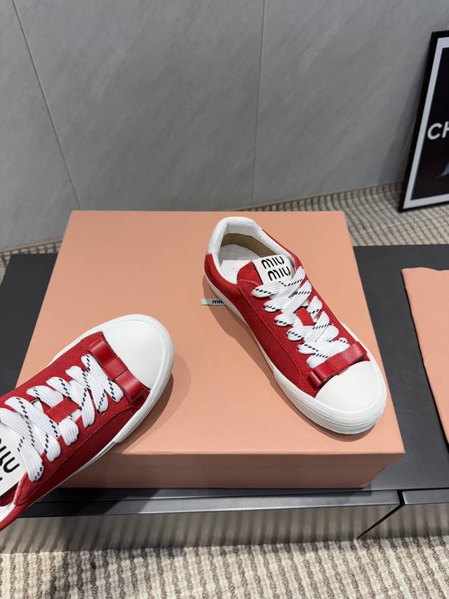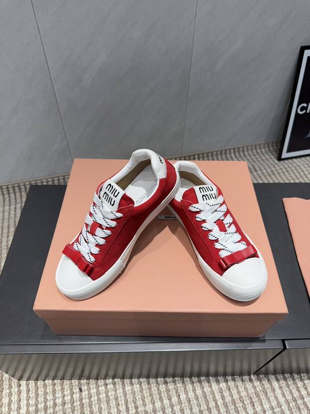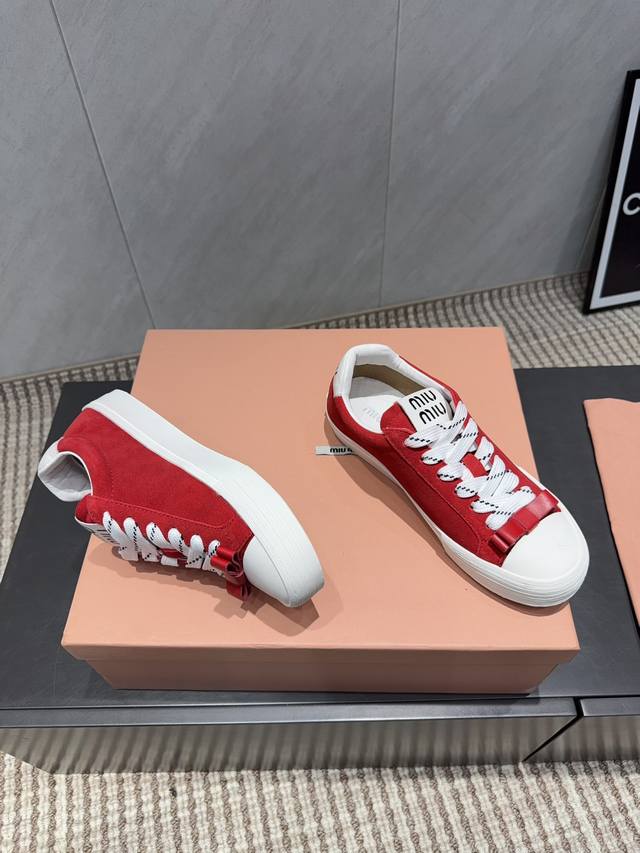 出厂: 独家顶级版本 缪缪Miumiu 2025Vs最新爆款休闲鞋系列 拼色蝴蝶结休闲鞋 Miumiu最新爆款 前卫大胆的设计,Miu Miu风格融于此款厚底帆
