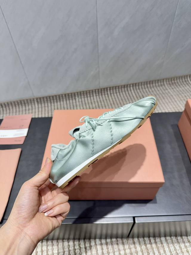 出厂: 独家顶级版本 DDD 缪缪Miumiu 2025Vs最新爆款休闲鞋系列 DDD 真丝绑带休闲鞋 DDD Miumiu最新爆款 前卫大胆的设计,Miu Miu风格融于此款厚底帆布运动鞋的简约线条, DDD 别致徽标饰于鞋舌与背面,点缀复古设计,平添标志性元素!厚底设计定义前卫的现代风格 DDD 面料:原版定制真丝布 DDD 内里:原版定制莱卡 DDD 垫脚:原版定制羊皮 DDD 大底:原版开模耐磨绒组合底 DDD 包装:原版全套包装 DDD 码数:35-39 40.定制不退换 DDD 颜色:官网同步