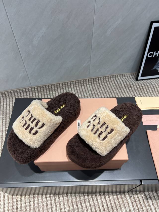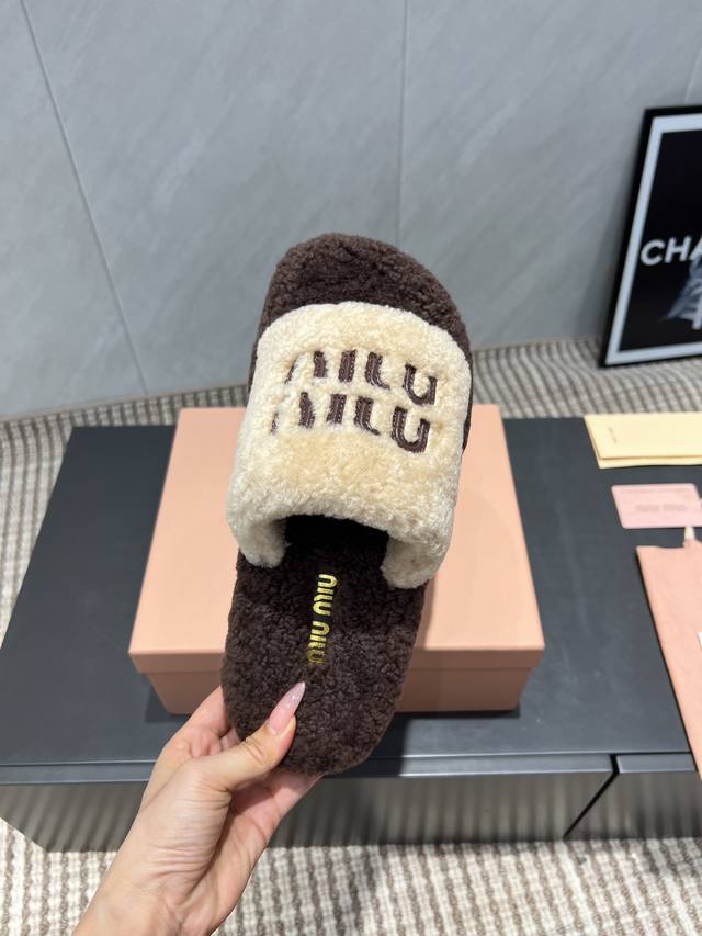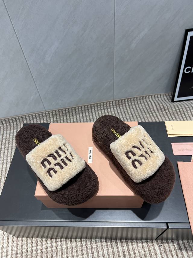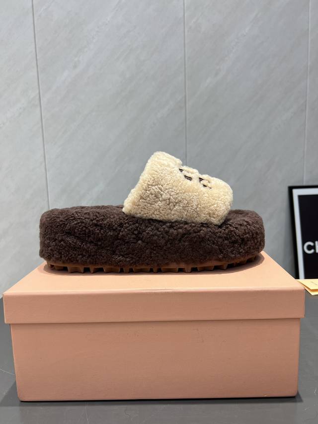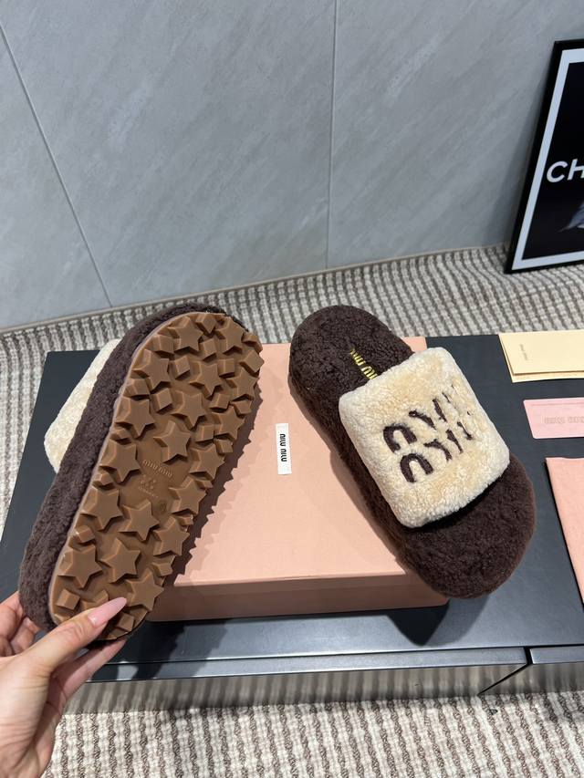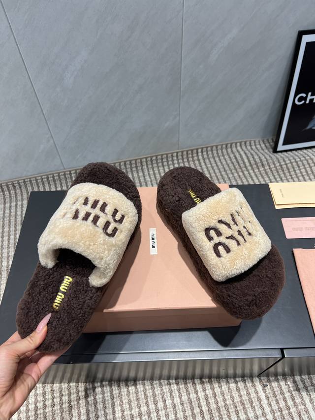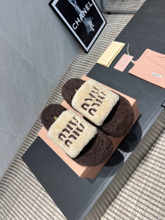 出厂: 独家顶级版本 缪缪Miumiu2025Vs新款毛拖系列 百搭时髦单品!不管居家还是外穿都是品味的象征性! 秋冬搭配袜子 那更是太绝太绝了 面料:定制原版