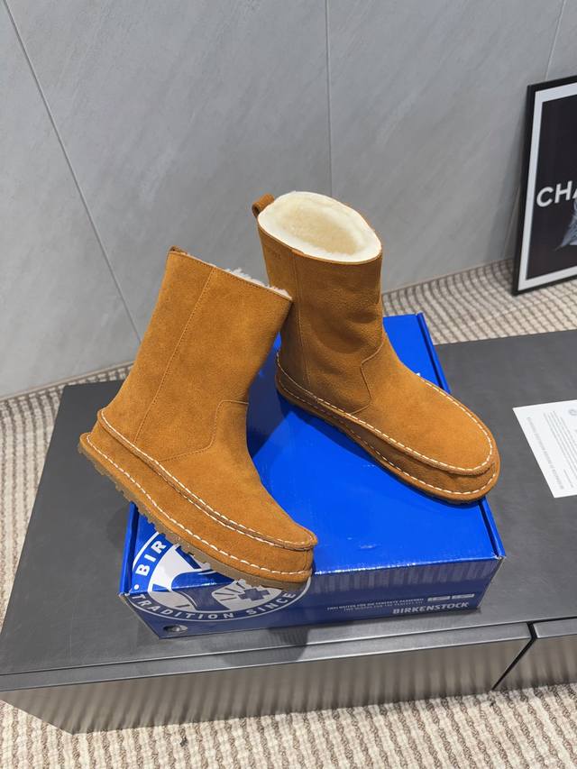 / 出厂: 独家顶级版本 Birkenstock~小众潮牌25Vs秋季新款雪地靴系列 圆头厚底雪地靴 原版一比一打造舒适度、包裹性都比较好。个性十足,很好驾驭各种风