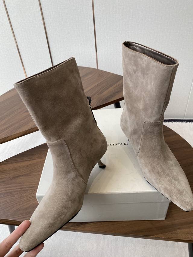 出厂: 独家顶级版本 DDD Brunello Cucineli Ss25New Arrival~ 秋冬新款系 尖头 短靴 DDD 上脚帅气舒适 秋冬一定要有一双Bc的战靴 Bc家的品牌鞋子设计基本没有啥1Og0标识, DDD 风格主要以米色 灰色 色调为主,非常低调奢华,高级感满满 小众有品位的代词~鞋子 DDD 虽然结合了不同材质不同颜色,但是没有任何违和感,一点也不夸张,反而让人在视觉上感觉舒适! DDD Bc家就是有能力把不同的颜色和材质结合,但又不会有明显的季节感,在任何时候拿出来穿都能让你满意