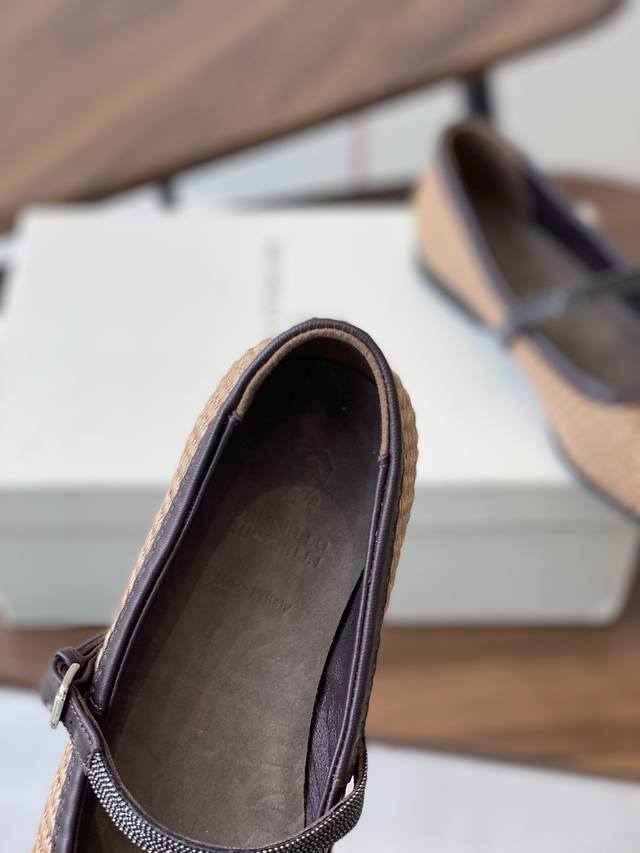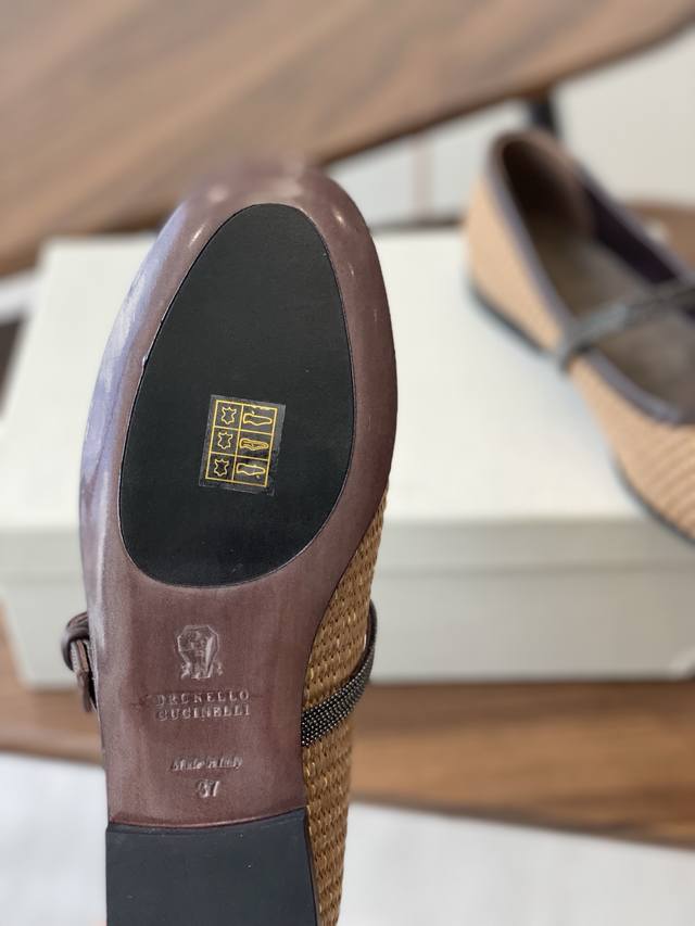 出厂: 独家顶级版本 Brunello Cucinelli 新款草编织Bc平底玛丽珍 DDD Bc很有品味!配上一双袜子穿也很不错,搭配牛仔裤穿也好看! DDD 作为女性最爱的品牌之一,真的出的每一款都让人爱不释手,女生鞋柜必不可少的单品 DDD Bc是意大利知名品牌,极简主义风格,纯手工串联珠链配饰!复古又高级!简约又大气,属于非常耐看的款式! DDD 高级百搭之王,完全没有抵抗力!脚感很好很舒服!看起来平平无奇,穿起来又瘦又帅! DDD 不局限任何场合,日常工作、时尚又干练!不管搭配 裙装、裤装、都非