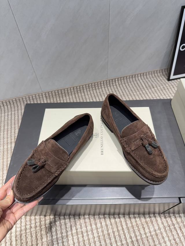 出厂: 独家顶级版本 DDD Brunellocucinelli 2025Vs秋冬季毛里乐福系列 DDD Brunellocucinelli 原版定制 穿着它轻盈舒适,即使通勤穿,也丝毫不怯场。鞋子虽然结合了不同材质,不同颜色,但是没有任何违和感强,一点也不夸张,反而让人在视觉上感觉舒适 DDD 面料:原版定制牛猄 DDD 内里:原版定制羊皮 DDD 垫脚:原版定制羊皮 DDD 大底:原版开模发泡成型底 DDD 码数:35-39 40.定制不退换 DDD 包装:原版全套包装 DDD 颜色官网同步更新 DD