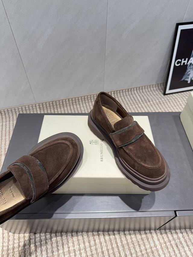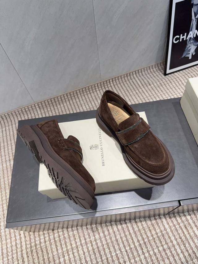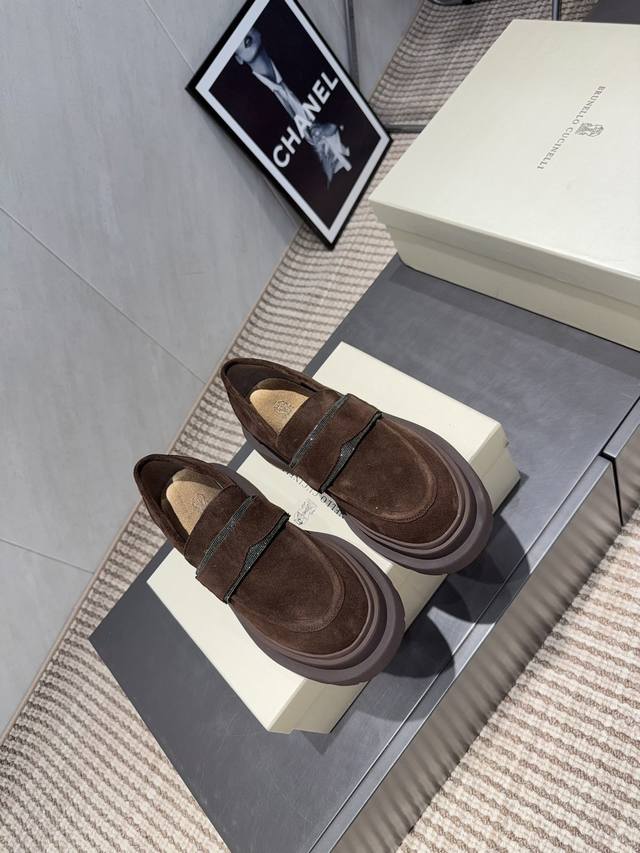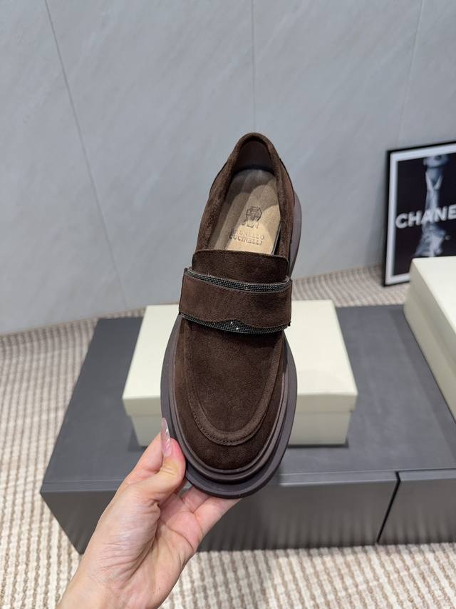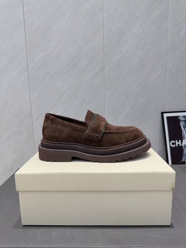出厂: 独家顶级版本 DDD Brunellocucinelli 2025Vs秋冬季毛里乐福系列 DDD Brunellocucinelli 原版定制 穿着它轻盈舒适,即使通勤穿,也丝毫不怯场。鞋子虽然结合了不同材质,不同颜色,但是没有任何违和感强,一点也不夸张,反而让人在视觉上感觉舒适 DDD 面料:原版定制牛猄 DDD 内里:原版定制羊皮 DDD 垫脚:原版定制羊皮 DDD 大底:原版开模发泡成型底 DDD 码数:35-39 40.41.定制不退换 DDD 包装:原版全套包装 DDD 颜色官网同步更新