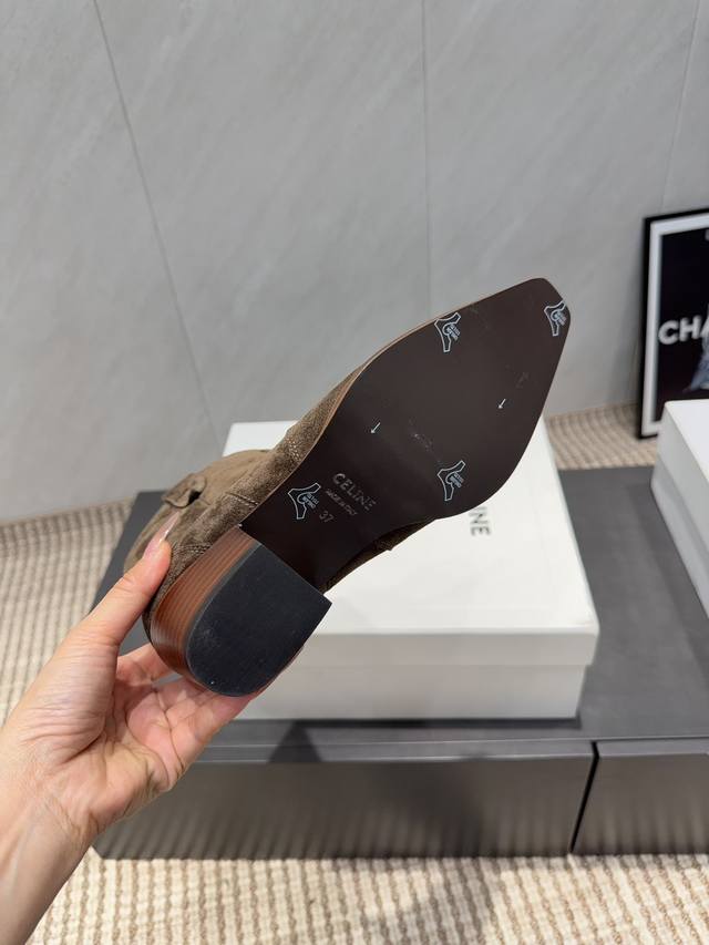 出厂: 独家顶级版本 Celin*赛*琳2025Vs秋冬最新爆款马丁靴系列 尖头复古罗马短靴 Lisa同款超火复古凯旋门松糕厚底绑带马丁靴! 25秋冬最爆款系列,各大明星网红热卖款,低调简约的设计,鞋面拼接羊毛的点缀,可爱的造型带点复古的味道,上脚显瘦轻便,而且5Cm鞋底增高同时走路轻松无压力还一点都不挑人,无论搭配什么都可以轻松驾驭 面料:原版定制牛猄 内里:原版定制牛皮 垫脚:原版定制牛皮 大底:原版定制真皮组合底 跟高:5Cm 包装:原版全套包装 码数: 35-39 40.41.定制不退换 颜色:官