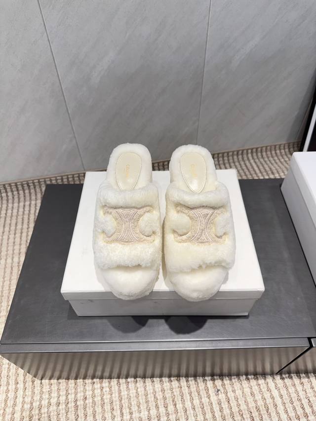 出厂: 独家顶级版本 DDD C*Eline赛*琳2025Vs秋季最新爆款毛拖系列 DDD 圆头厚底毛拖 DDD 官网同步最新款,专柜最高版本顶级品质,毛茸茸的时髦感十足,舒适的圆头设计,纯羊羔毛材质,蓬松密卷,敦厚饱满,秋冬最新款独家版面,纯羊羔毛懒人毛拖热上线 DDD 面料:原版定制纯羊羔毛 DDD 内里:原版定制纯羊羔毛 DDD 垫脚:原版定制纯羊羔毛 DDD 大底:原版开模防滑底 DDD 码数:35-39 40.41.订做不退不换 DDD 包装:原版全套包装 DDD 颜色:官网同步更新 DDD