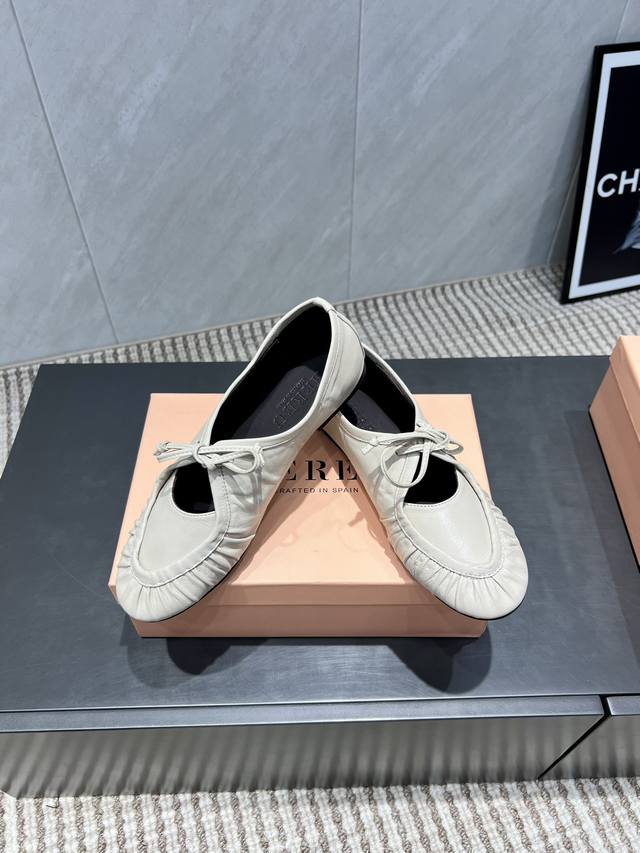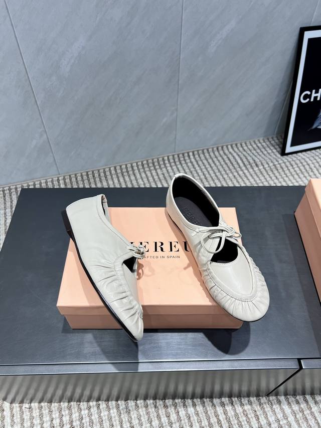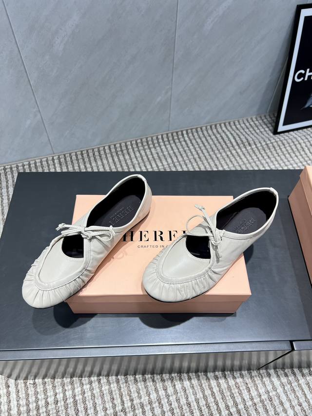 出厂: 独家顶级版本 Hereu小众潮牌25Vs秋季新款系列 圆头平底单鞋 原版一比一打造舒适度、包裹性都比较好。个性十足,很好驾驭各种风格衣服搭配 面料:原版定制牛皮 内里:原版定制羊皮 垫脚:原版定制羊皮 大底:原版定制真皮大底 跟高:平底 包装:原版全套包装, 码数:35-39 40.41码定制不退换 颜色:官网同步更新
