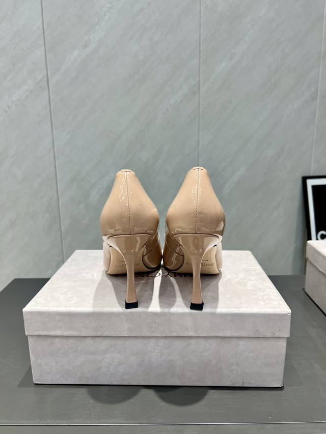 出厂: 独家顶级版本 Jimmychoo~25Vs秋季最新时装爆款单鞋系列 尖头钻链高跟单鞋 原版顶级复刻,超高品质奉上时髦有范~ 新品独家首发,绝对让你独一无二 整体线条流畅感超强,拉伸腿型,上脚舒适度超级好,非常有创意的设计感,呈现特别高级 面料:原版定制漆皮钻链工艺 内里:原版定制羊皮 大底:原版进口真皮大底 鞋跟:8.5Cm 包装:原版全套包装 码数:35-40 40.41.42定制不退换 颜色:官方同步更新