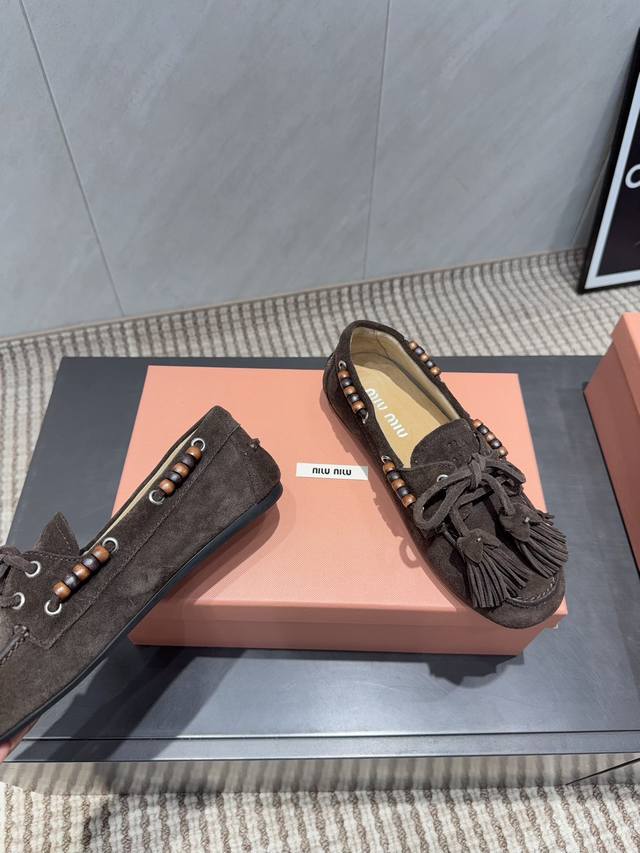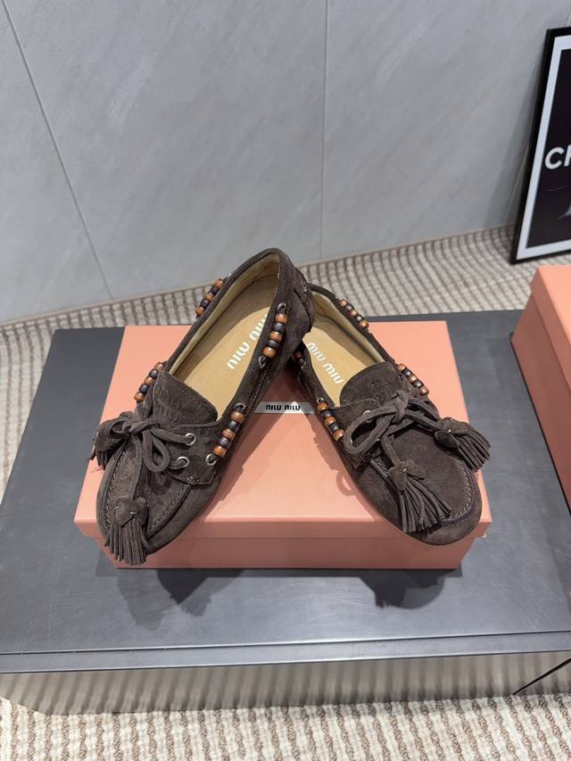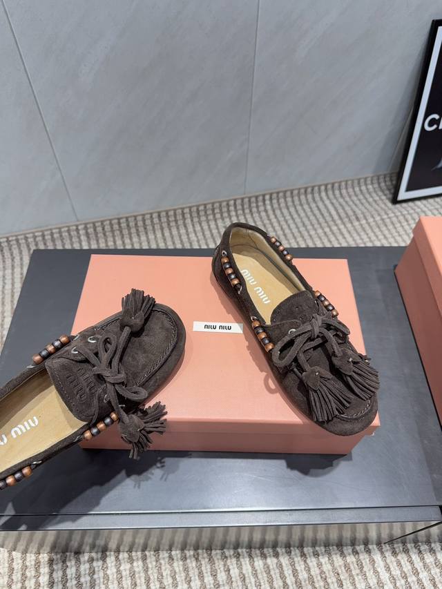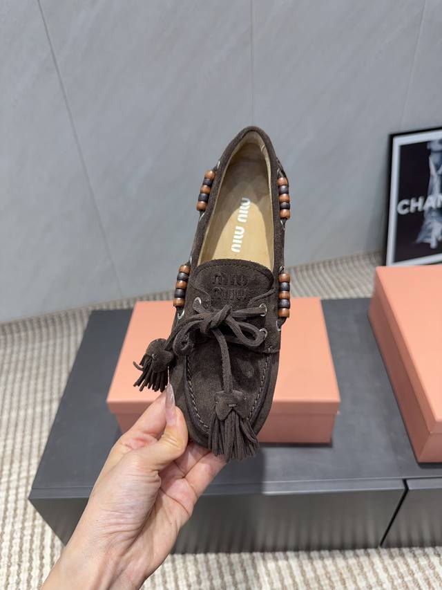出厂: 独家顶级版本 DDD Mi* Mi*缪*缪2025Vs秋季新款乐福单鞋系列 DDD 流苏串珠乐福鞋 DDD Miu Miu源于意大利时尚设计品牌一系列渔夫鞋 DDD 草编麻绳设计 上脚秒变大长腿,小个子福音 简约好搭超显腿长!原比例开发方钻扣配件,质感满满,纹里压印清晰,有光泽,鞋面双车线缝马克线加固工艺,稳固不跑线,超软垫脚 穿起来不累脚 Logo压印清晰可见! DDD 面料:定制原版牛猄流苏串珠工艺 DDD 内里:定制原版羊皮 DDD 垫脚:定制原版羊皮 DDD 大底:原版开模防滑成型底 DD