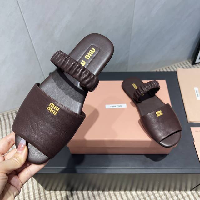 出厂: 独家顶级版本 Miumiu缪缪2025Vs春夏最新走秀爆款凉拖系列 平底横带凉拖 Miumiu秋冬T台走秀网红同款"造梦不夜城",Miumiu能在重要场