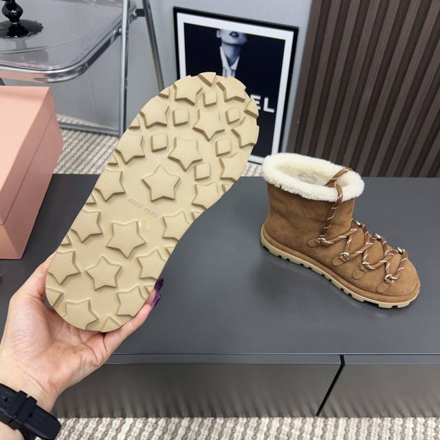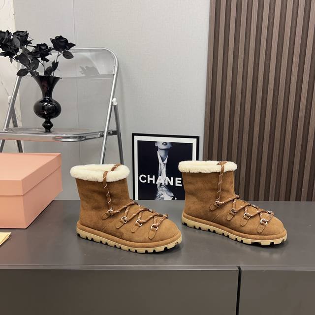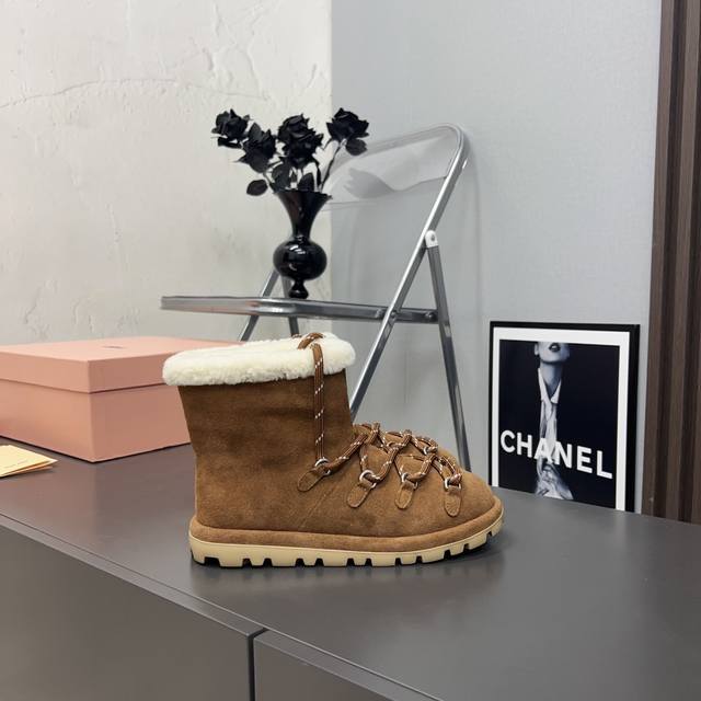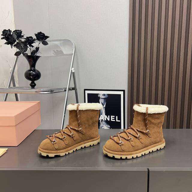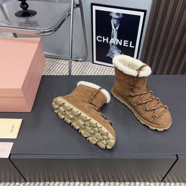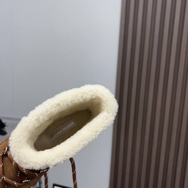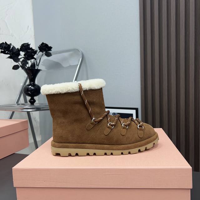 出厂: 独家顶级版本 Miumiu缪缪2025Vs秋冬最新走秀爆款雪地靴系列 圆头绑带厚底雪地靴 顶级版本Miumi秋冬限量走秀款雪地靴! 今年最值得入手的靴子