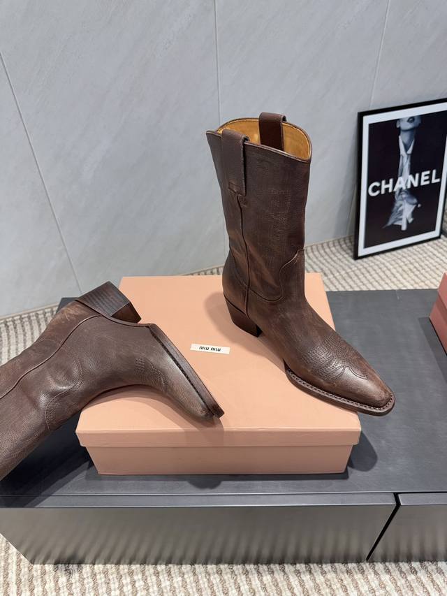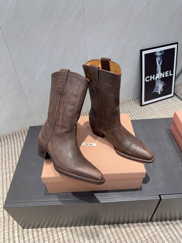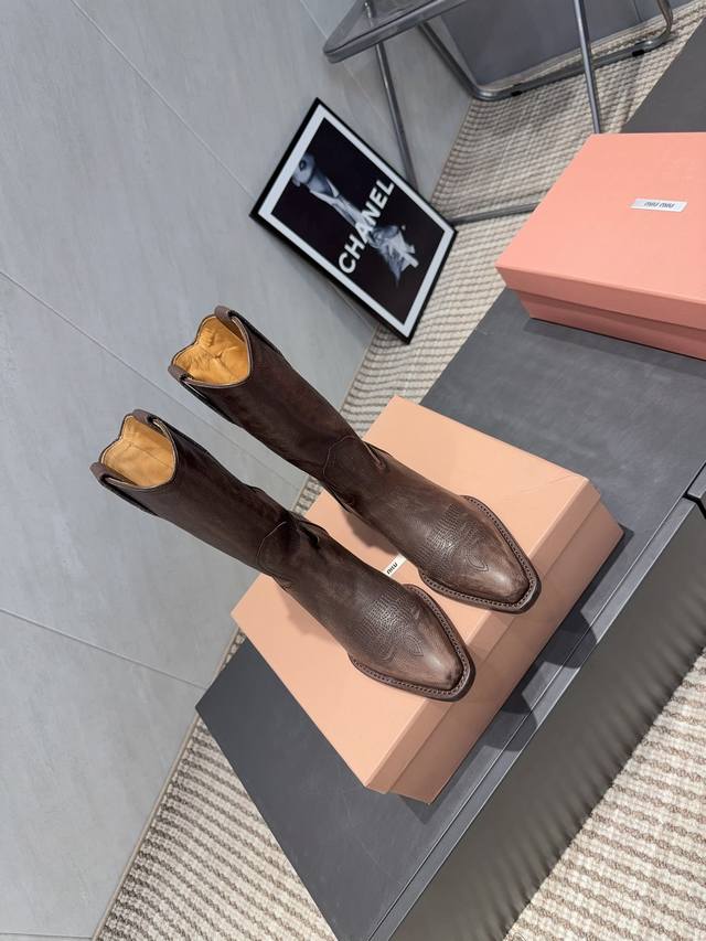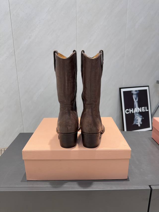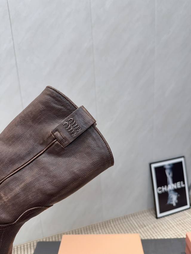 出厂: 独家顶级版本 Miumiu缪缪2025Vs秋冬最新走秀爆款靴子系列 一脚蹬罗马中靴 顶级版本Miumi秋冬限量走秀款长筒靴! 今年最值得入手的靴子 没有之一!易梦玲同款超多网红明星上脚 Miumi今年秋冬确实泰酷辣 秋冬限定款 专柜非常难买 看着很硬的样子 其实非常软巨好穿!脚感超赞! 靴筒宽大 不管腿粗腿细 都能穿出宽松感而且非常显腿直!!朋克风十足! 鞋面:原版定制牛皮 内里:原版定制牛皮 垫脚:原版定制牛皮 大底:原版定制真皮组合底 跟高:5Cm 码数:35-39 40.41.定制不退不换