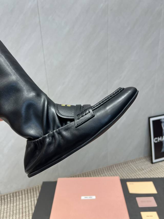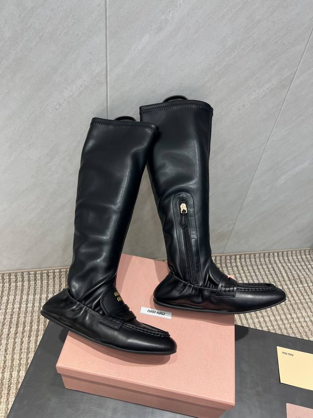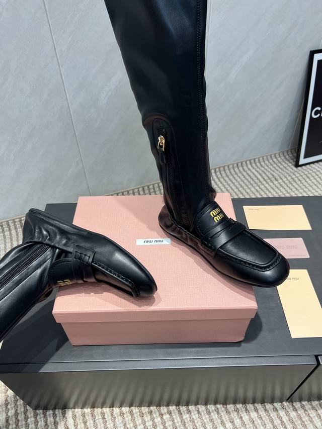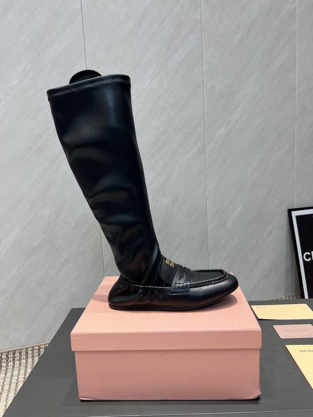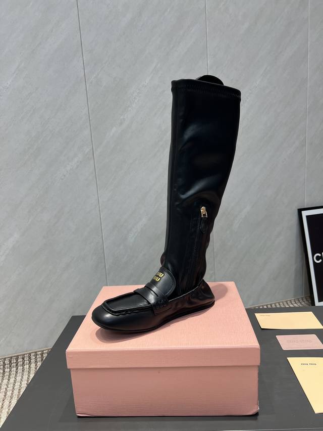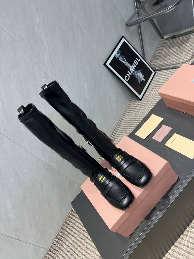 出厂: 独家顶级版本 Miumiu缪缪2025Vs秋冬最新走秀爆款靴子系列 复古方圆头弹力高靴 顶级版本Miumi秋冬限量走秀款长筒靴! 今年最值得入手的靴子
