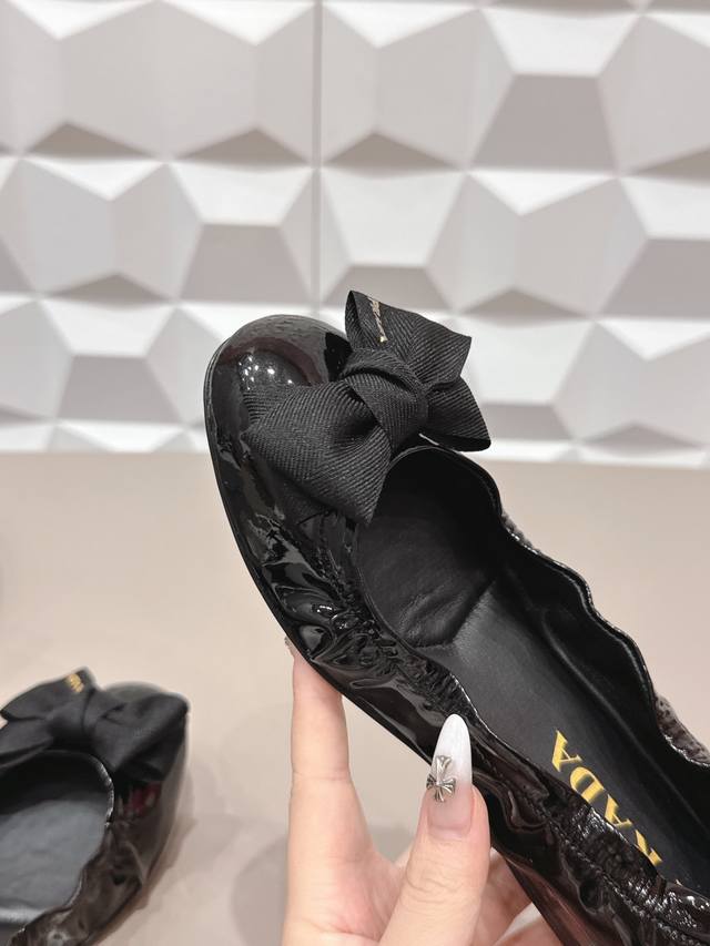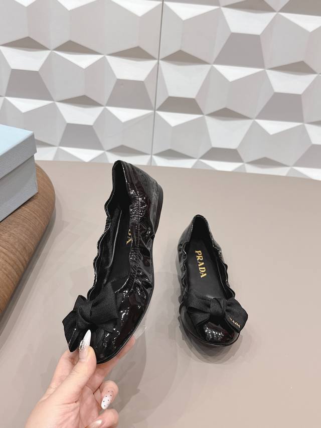 出厂: 独家顶级版本 Ddd pra*D普拉*达2026Vs早春走秀爆款时装单鞋系列 Ddd 圆头蝴蝶结单鞋 Ddd prada春夏T台走秀网红同款"造梦不夜城",prada能在重要场合上用得上了,小清新风带点贵气的感觉,上脚非常完美,穿搭配上此鞋,优雅大方,晶莹剔透,无论各种配件材质,都是独家一比一定制,必做到原版零距离,整个系列都充满了令人兴奋和意外的元素结合,不同的材质,肌理的面料的表现,具有极浓的艺术气息,让你领略prada女孩的百变风格 Ddd 鞋面:原版定制漆皮蝴蝶结工艺 Ddd 内里:原版定