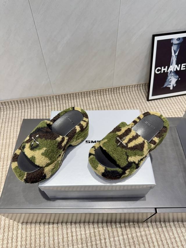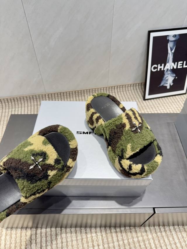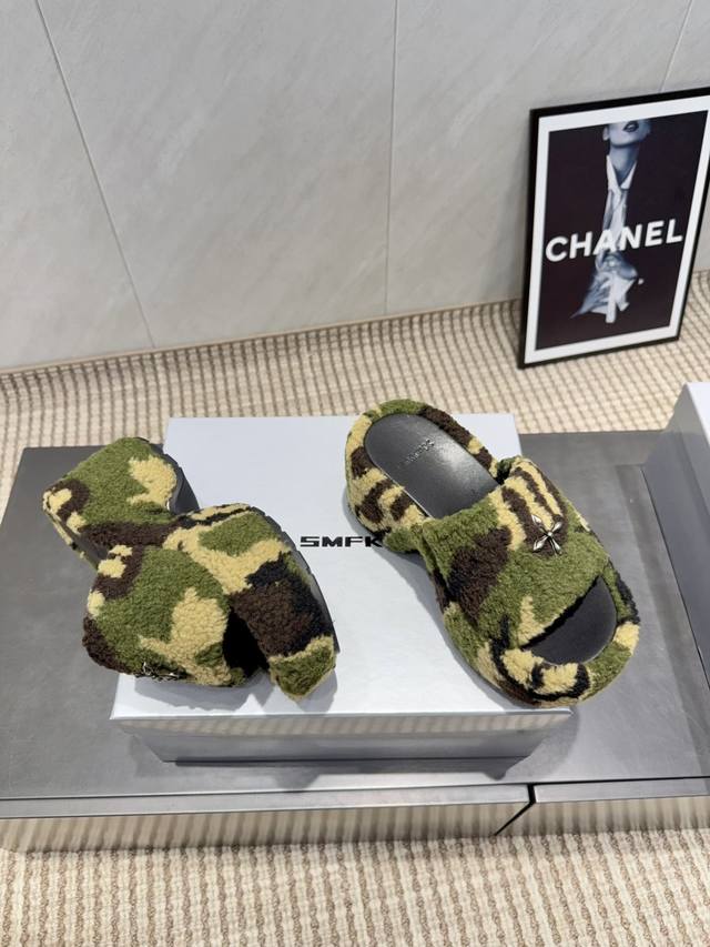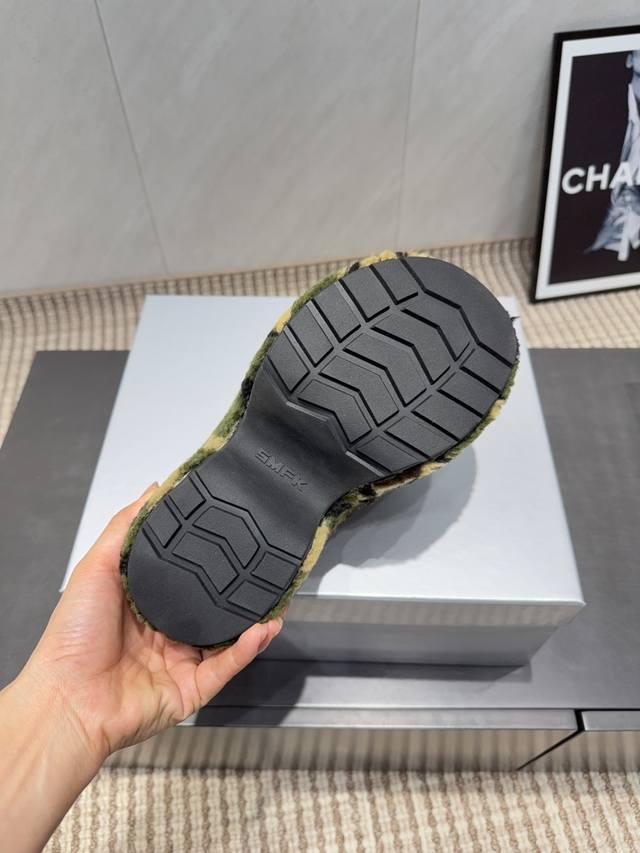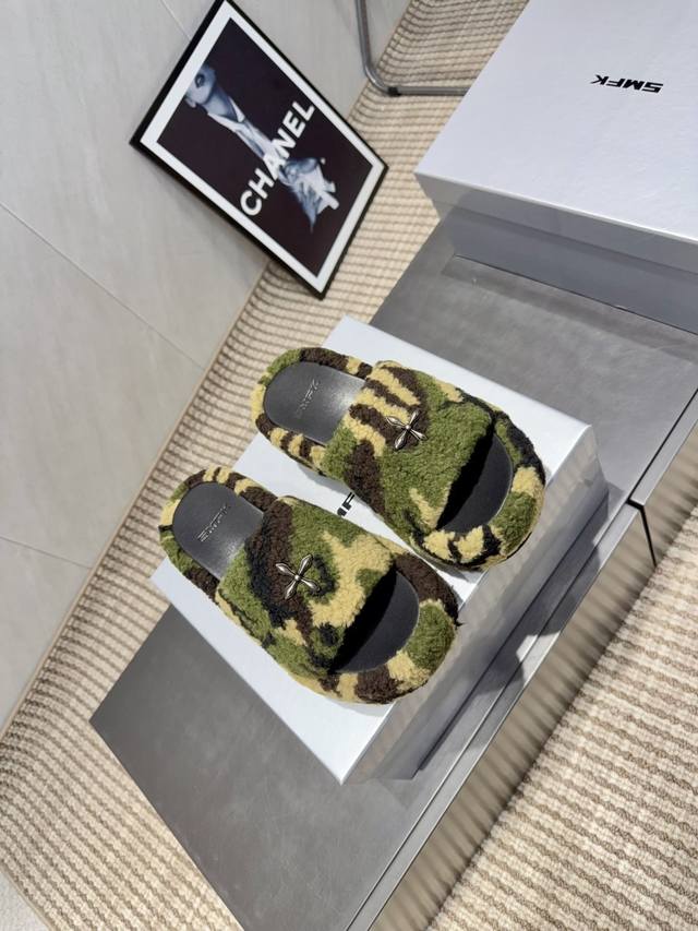 出厂: 独家顶级版本 Smfk Tide 2025Vs秋冬最新王炸爆款毛拖系列 十字花厚底毛拖 百搭的极简风国潮,新作继承了诸多品牌制胜的流行元素,势必大热 可