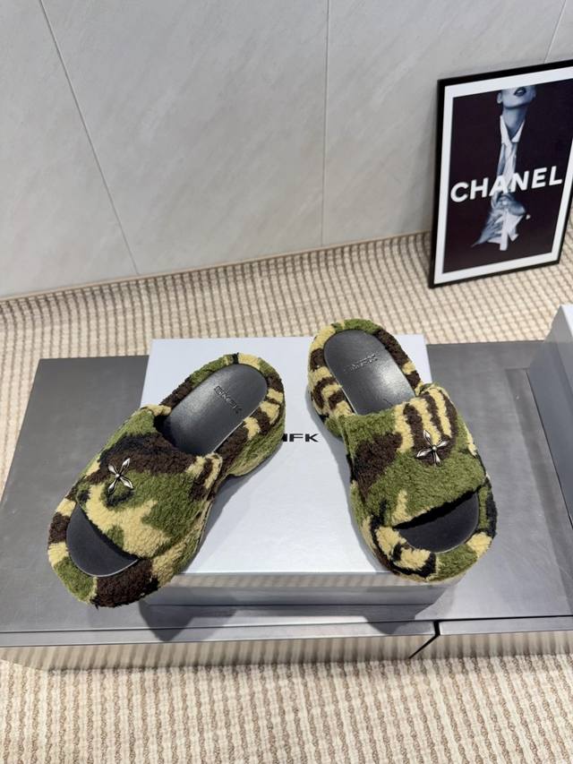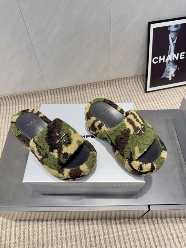 出厂: 独家顶级版本 DDD Smfk Tide 2025Vs秋冬最新王炸爆款毛拖系列 DDD 十字花厚底毛拖 DDD 百搭的极简风国潮,新作继承了诸多品牌制胜的流行元素,势必大热 DDD 可与窄腿牛仔裤或迷你裙同穿,也能与印花连衣裙打造叠穿造型,细节还确保穿着稳妥不易移位,营造松垮慵懒风 DDD 面料:原版定制羊织毛 DDD 内里:原版定制透气网 DDD 垫脚:原版定制牛纹超纤 DDD 大底:原版开模水台羊织毛包水台 DDD 跟高:7.5Cm DDD 码数:35-39 40.定制不退换 DDD 包装:原