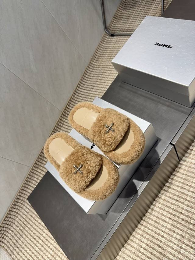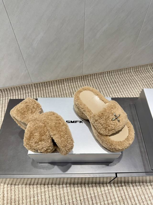 出厂: 独家顶级版本 Smfk Tide 2025Vs秋冬最新王炸爆款毛拖系列 十字花厚底毛拖 百搭的极简风国潮,新作继承了诸多品牌制胜的流行元素,势必大热 可