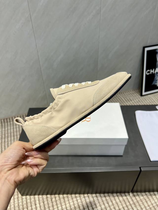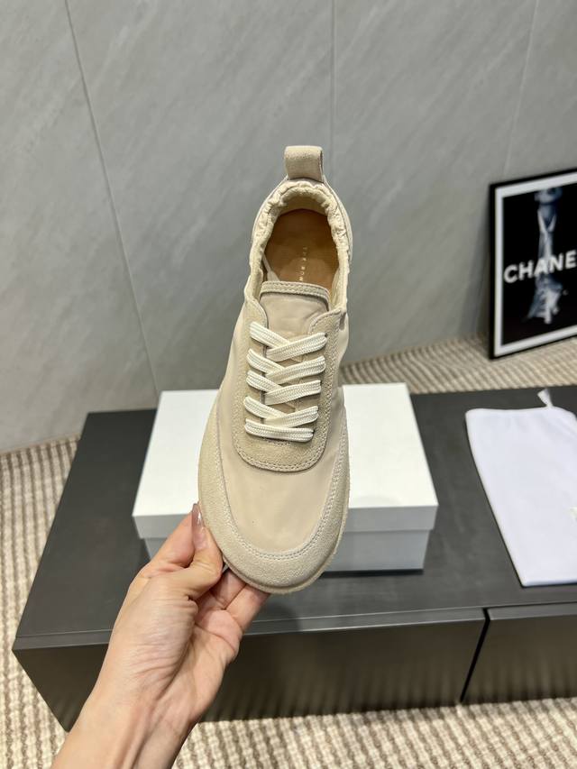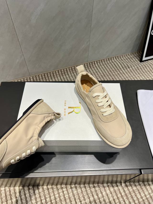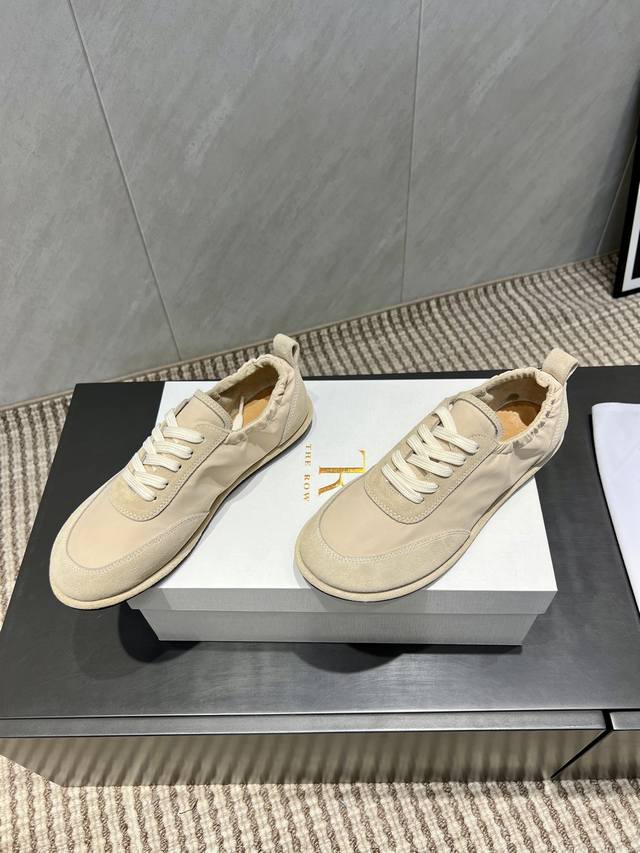 出厂: 独家顶级版本 The Row~小众潮牌25Vs秋季休闲新款系列 圆头拼色休闲鞋 原版一比一打造舒适度、包裹性都比较好。个性十足,很好驾驭各种风格衣服搭配 面料:原版定制牛猄雨伞布 内里:原版定制羊皮 垫脚:原版定制羊皮 大底:原版开模成型底 跟高:1.0Cm 包装:原版全套包装, 码数:35-39 40.定制不退换 颜色:官网同步更新