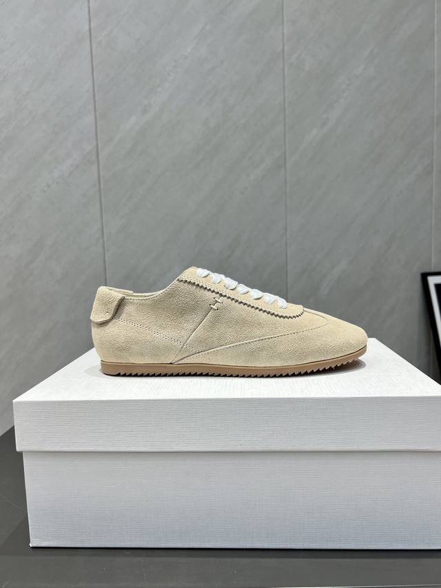 出厂: 独家顶级版本 The Row~小众潮牌25Vs秋季休闲新款系列 圆头拼色休闲鞋 原版一比一打造舒适度、包裹性都比较好。个性十足,很好驾驭各种风格衣服搭配 面料:原版定制牛猄 内里:原版定制羊皮 垫脚:原版定制羊皮 大底:原版开模成型底 跟高:1.0Cm 包装:原版全套包装, 码数:35-39 40.定制不退换 颜色:官网同步更新